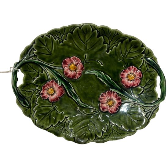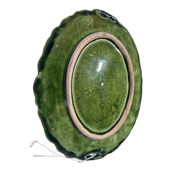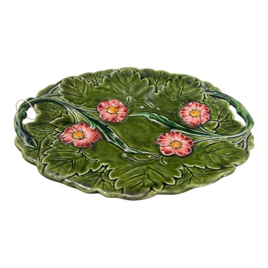 Závěsný keramický talíř z dílen Schütz Blansko v Olomučanech. Tác je opatřen dvěma úchyty po stranách a reliéfním ozdobným dekorem v podobě růží. Rozměry talíře jsou: 31 x 24,5 cm. Na výšku měří 4 cm. V perfektním stavu bez poškození. Značeno ze spodní strany dole vtlačenou značkou Blansko.