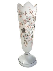 Bílá skleněná váza s květinami