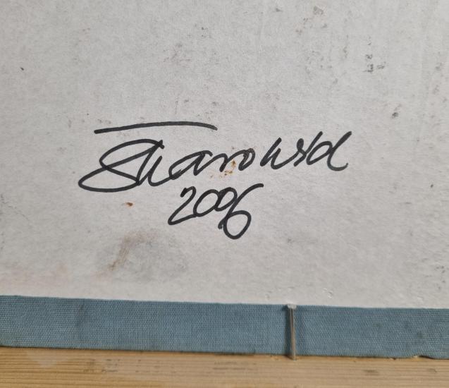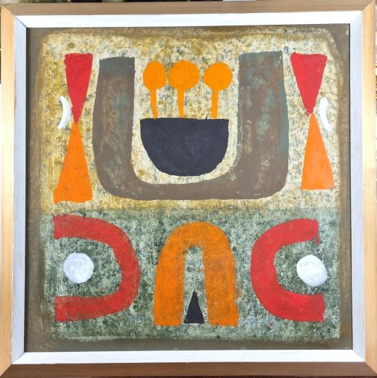 Malba od Jaroslava Škarohlída s námětem symbolů, které odkazují k florálnímu tvarosloví. Umělec vytahuje tvary a fragmenty přírody, ze kterých v díle vytváří znaky. Ty používá repetetivně a vytváří symetrickou kompozici, to vše na skvrnitém pozadí. Kombinovaná technika na kartonu?, rámováno, rozměry s rámem 60 x 60 cm, rozměry díla 50 x 50 cm. Signováno zezadu "Škarohlíd 2006".