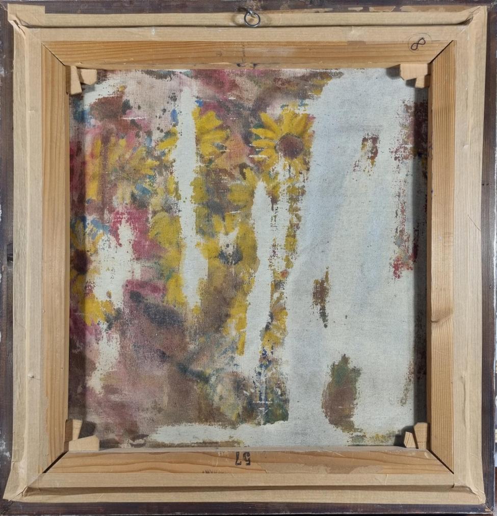 Skvělá malba od Františka Bílkovského s námětem pohledu na oplocenou zahradu, za kterou se rozprostírá město. Centrálním a dominantním motivem je rozkvetlá třešeň, která svítí svými bílými květy, je to také část obrazu, která je nejpropracovanější. V dáli se v náznaku rýsuje město na horizontu, zahaleno neostrým mlžným oparem. Olej na plátně, rámováno, rozměry s rámem 70 x 73 cm, rozměry díla 55 x 58 cm. Signováno vpravo dole "Bílkovský".