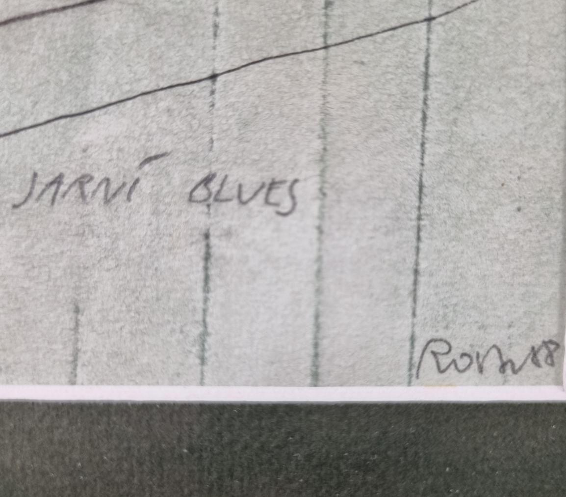 Příjemné drobné dílo od Rostislava Pospíšil. Dílo je po formální i obsahové stránce velmi minimalistické, umělec využívá jemných linek a rozpitých barevných ploch. Dílo upřesňuje názvem, který se stává součástí obrazu. Kombinovaná technika na papíře, rámováno pod sklem, rozměry s rámem 26 x 20 cm, rozměry díla 14 x 9 cm. Signováno vpravo dole.