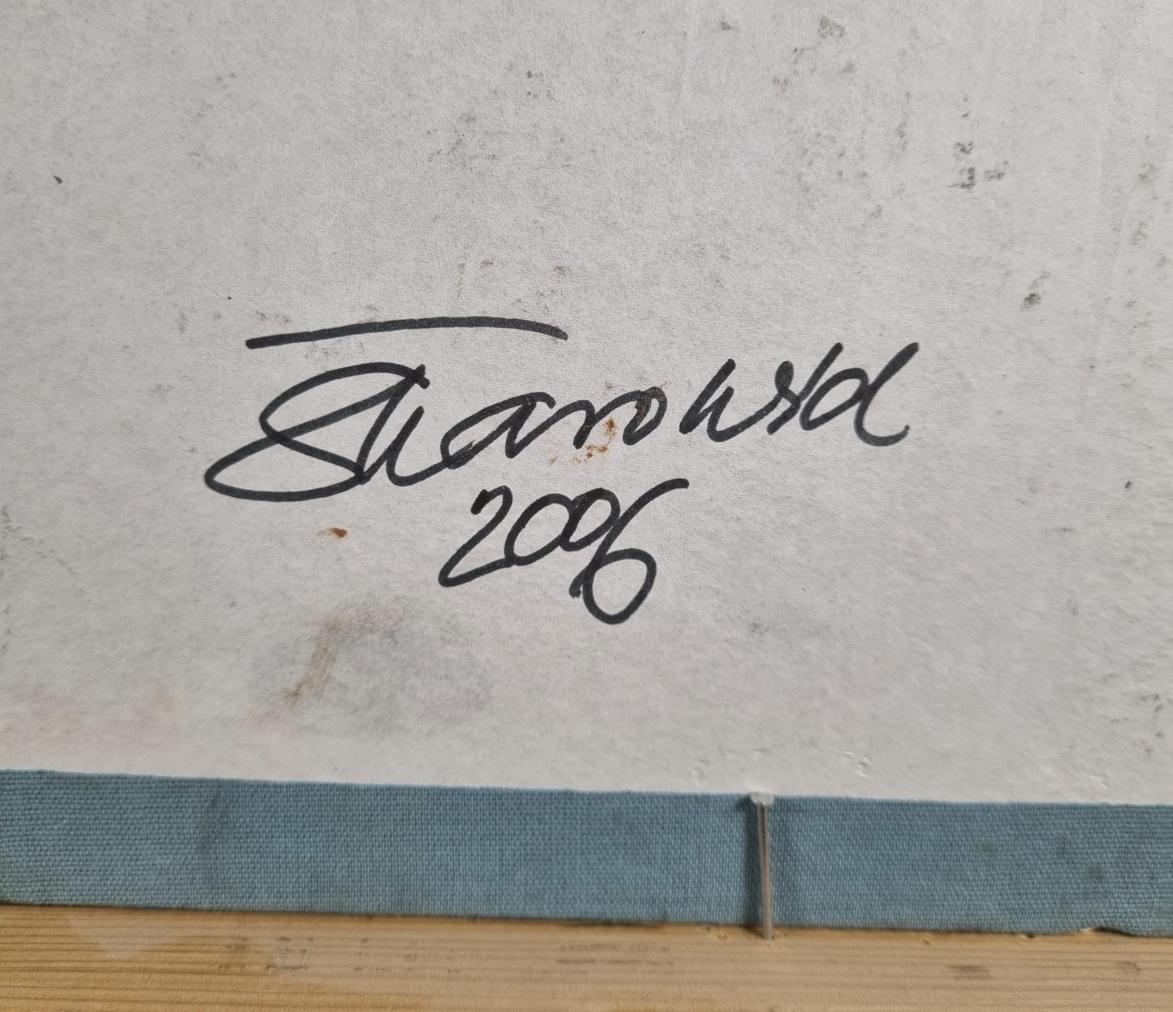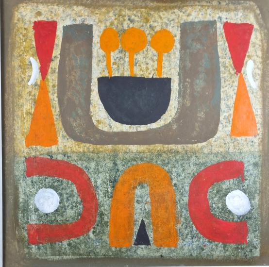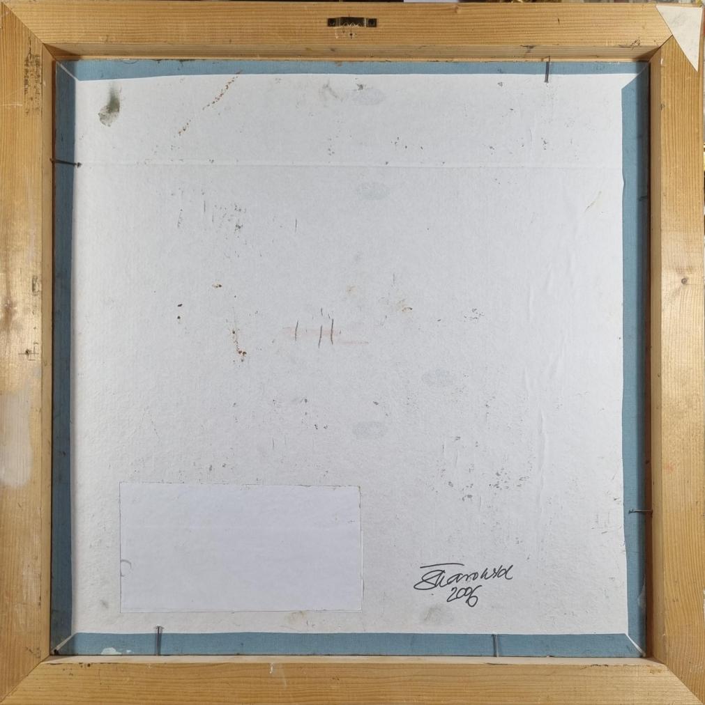 Malba od Jaroslava Škarohlída s námětem symbolů, které odkazují k florálnímu tvarosloví. Umělec vytahuje tvary a fragmenty přírody, ze kterých v díle vytváří znaky. Ty používá repetetivně a vytváří symetrickou kompozici, to vše na skvrnitém pozadí. Kombinovaná technika na kartonu?, rámováno, rozměry s rámem 60 x 60 cm, rozměry díla 50 x 50 cm. Signováno zezadu "Škarohlíd 2006".