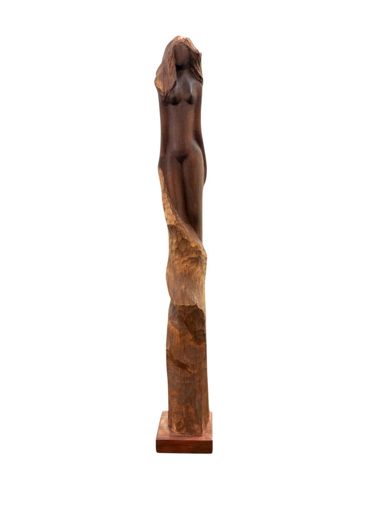 Ručně vyřezávaná plastika z lehkého tmavého dřeva na nízkém podstavci. Umělec nechává jemně vyplynout hladké křivky ženského těla z kontrastně strukturovaného povrchu, jako vílu. Na výšku i s podstavcem měří plastika 42 cm, hloubka je 3,5 cm. Rozměry podstavce jsou 6 x 6 cm. V nejširším bodě měří 5,5 cm. V perfektním stavu bez poškození. Nesignováno, neznačeno.