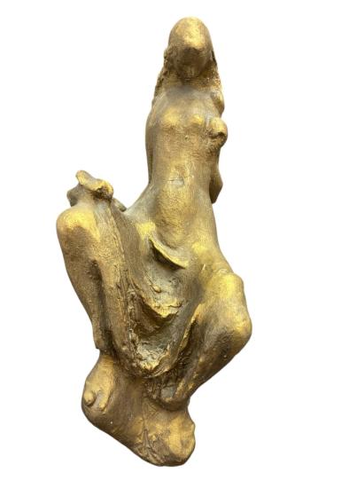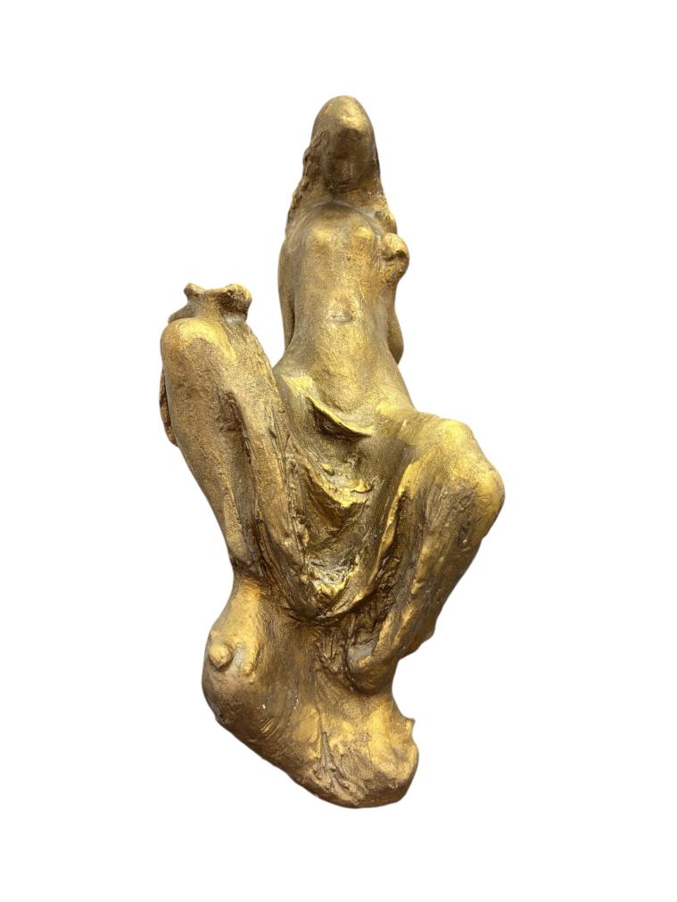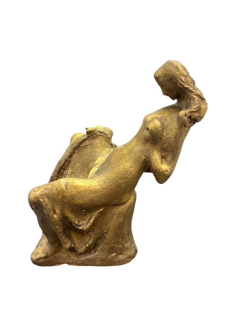 Sádrová plastika vyobrazující akt ženy, od autora jménem Jiří Marek. Patinováno zlatou barvou. Na výšku měří 31 cm, délka 26 cm. Hloubka 15 cm. Signováno Jirka Marek. V perfektním stavu, bez poškození.