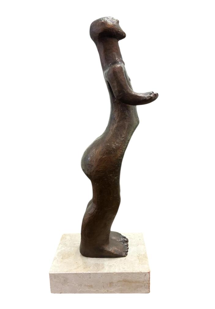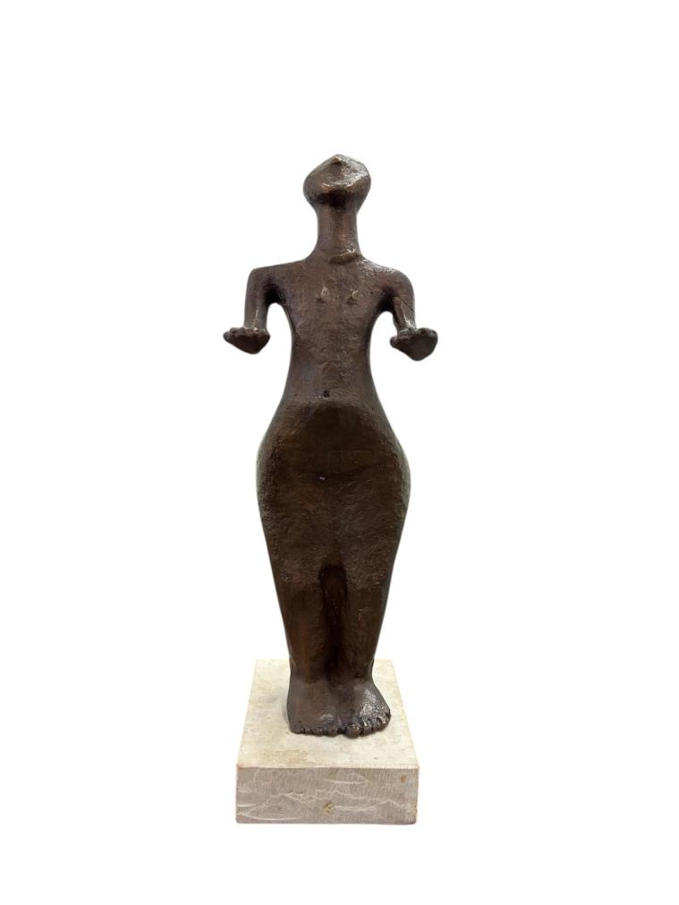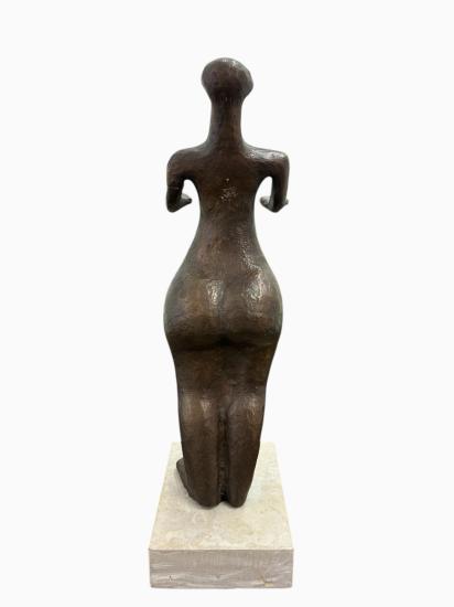 Bronzová plastika věrně kopírující původní sošku hlubokomašůvecké Venuše, která byla vytvořena okolo roku 4600 př. n. l. Plastika je připevněna šroubem ke kamennému podstavci. Celková výška je 33 cm. V nejširším bodě měří 8,5 cm. Rozměry podstavce jsou 12 x 9 cm a 3 cm na výšku. Neznačeno. Šroub je mírně uvolněný.