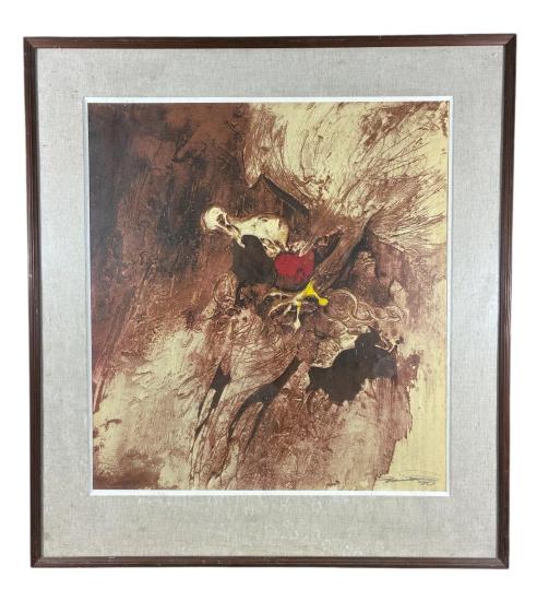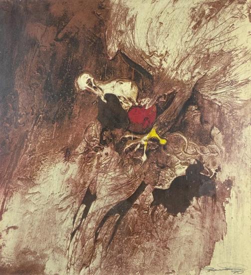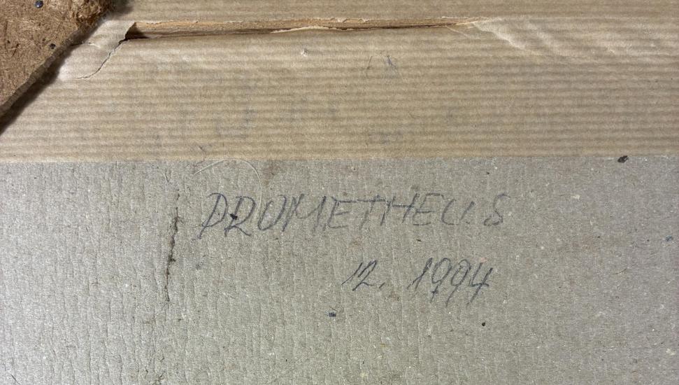 Abstraktní dílo v dynamickém stylu, které nese apokalyptický nádech. Má totiž zobrazovat Prométhea a jeho trest, v podobě orlích pařátů a ostrého zobáku, který mu trhá játra z těla. Ve změti struktur a linií vidíme krom orlího drápu i část torza mužského těla, nebo oka řetězu. Barevná litografie na papíře. Zarámováno, pod sklem. Paspartováno. Rozměry grafického listu jsou 47 x 50 cm. Rozměry s rámem jsou 64 x 69 cm. V pravém dolním rohu se nachází signatura Kristofori. V levém dolním rohu potom AO 63/100. Ze zadní strany obrazu se nachází název díla a datace 1994.