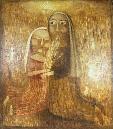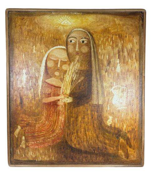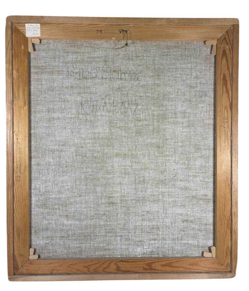 Velkoformátová malba s portrétem biblických postav jménem Rút a Boaz. Dílo hraje teplými zemitými odstíny, které ladí s motivem. Autorkou je česká malířka Renata Štolbová, která dvojici vyobrazuje ve svém typickém stylu se špetkou symbolismu. Olej na plátně, zarámováno do dřevěného rámu. Rozměry malby jsou 70 x 80 cm. Rozměry s rámem jsou 74 x 84 cm. Signatura se nachází v pravém dolním rohu- Monogram v trojúhelníku: ŠR 2000. Z druhé strany plátna nápis: Renata Štolbová, Rút a Boaz.