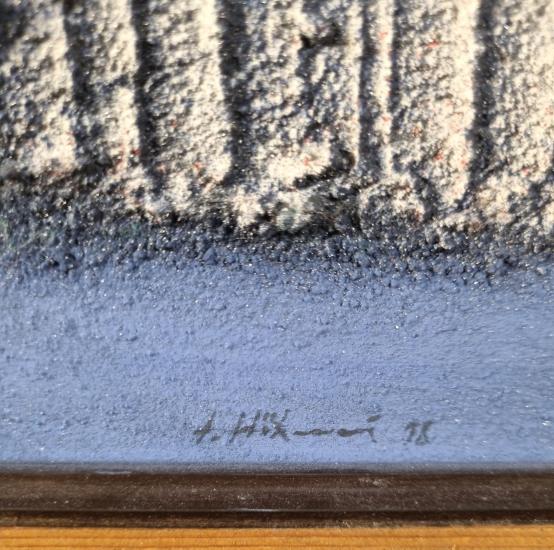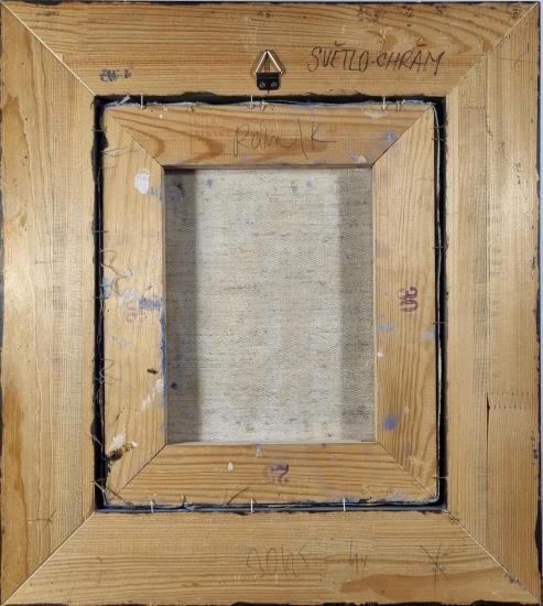 Asambláž na plátně od české akademické malířky Zdeny Höhmové z roku 1978. Na obraze s modrým pozadím se nachází útvar nepravidelného tvaru s vytvořenou strukturou z hrudkujícího se materiálu. Obraz působí klidným dojmem, a ikdyž je zcela abstraktní, tak díky názvu můžeme pomocí mysli přemýšlet nad tím, kde se chrám v obraze nachází či jeho části. Obraz je v dřevěném rámu a je signovaný uprostřed dole Höhmová 98 . Rozměry jsou i s rámem jsou 40 cm x 45 cm a bez něj 29 cm x 24 cm.
