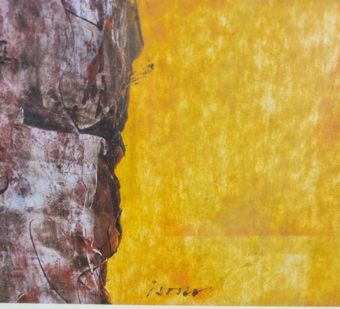 Dílo od českého umělce Josefa Istlera. Abstraktně laděný námět je bohatý na struktury, je patrné, že autor vytváří několik vrstev přes sebe a vytváří tak hloubku obrazu. Dílo je otevřené interpretaci diváka, je možné v něm vnímat kontrastní plochy, které se v jednom mometu prolnou a jedna ustupuje druhé. Kombinovaná technika na papíře, rámováno pod sklem, rozměry s rámem 59 x 50 cm, rozměry díla 42 x 30 cm. Signováno vpravo dole "Istler".