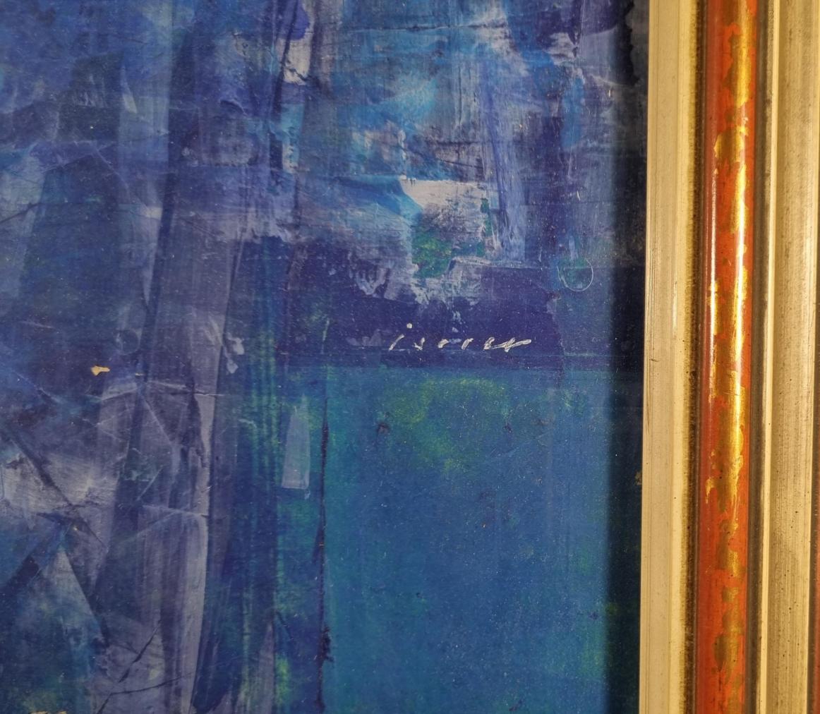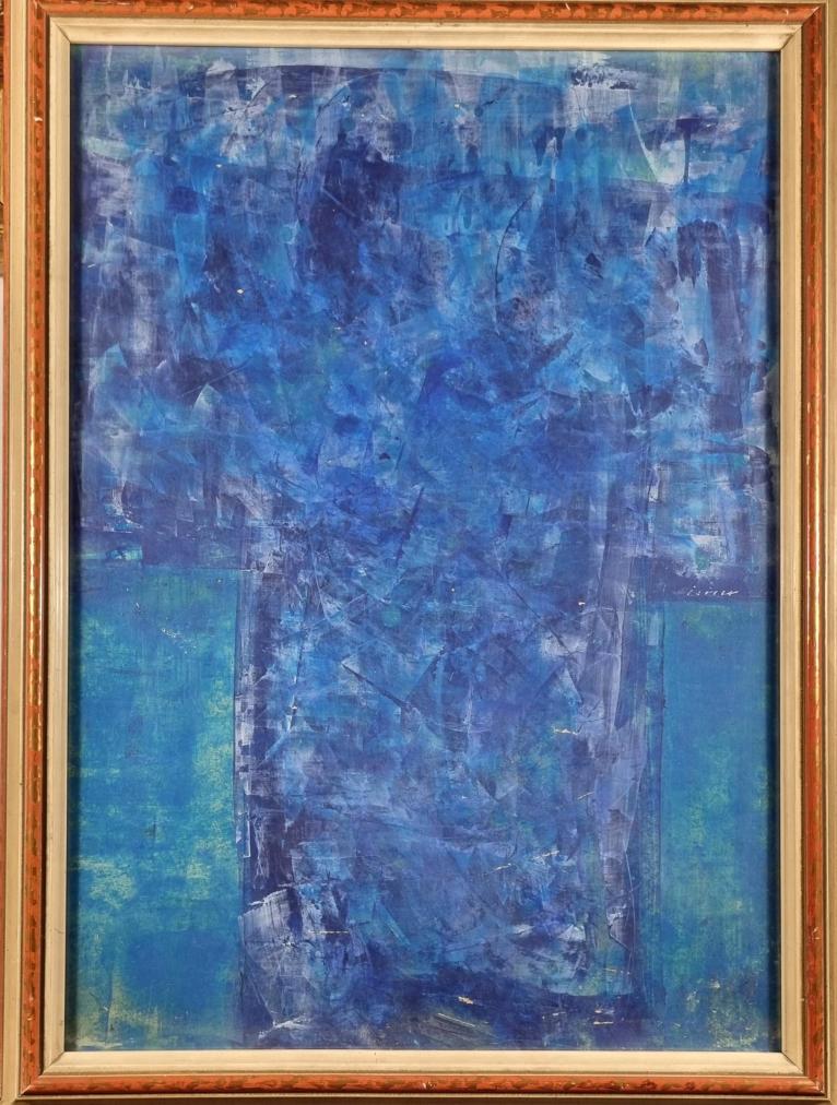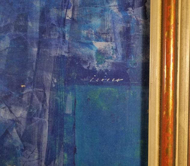 Příjemné dílo od Josefa Istlera. Umělec do tvořivého procesu zapojuje překrývání, opakování tahů a skrývá tak významy obrazu do vrstev. V tomto díle střídá tři tóny modré barvy, čímž vzniká velmi příjemný obraz abstraktního charakteru. Kombinovaná technika na papíře, rozměry s rámem 62 x 46 cm, rozměry díla 55 x 38 cm. Signováno na pravé straně uprostřed obrazu "Istler".