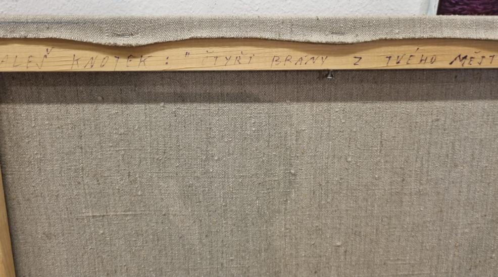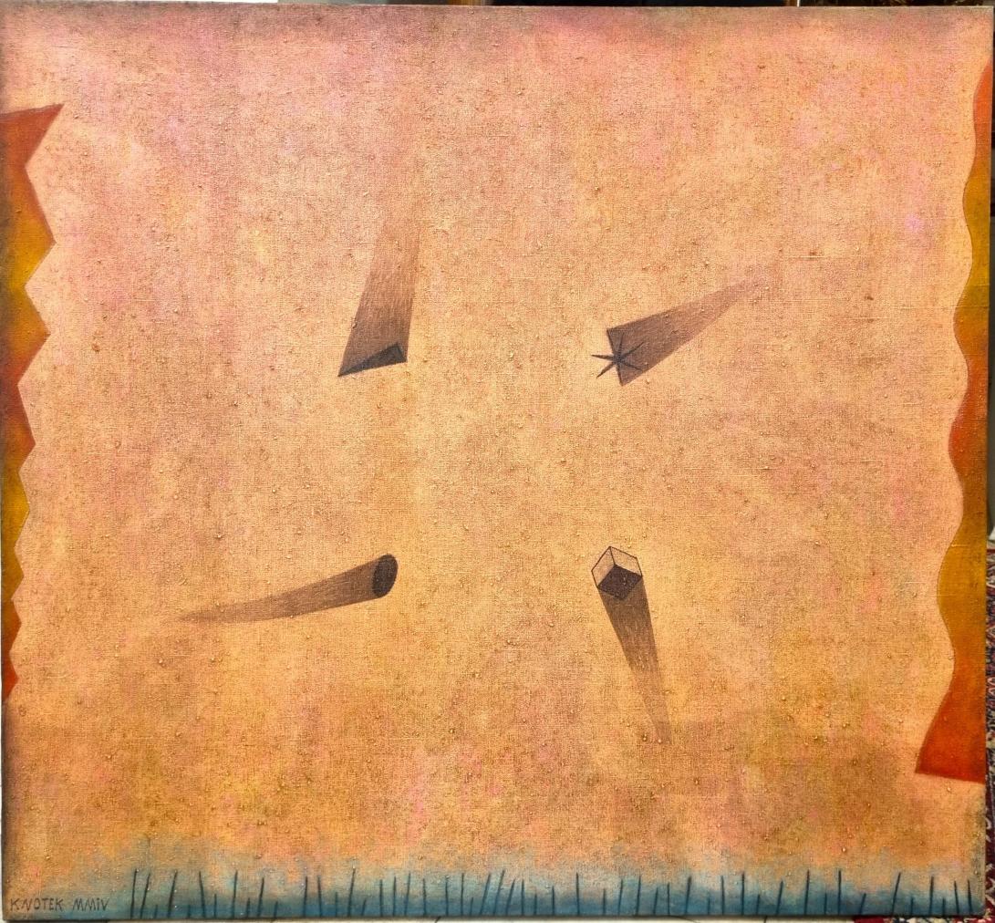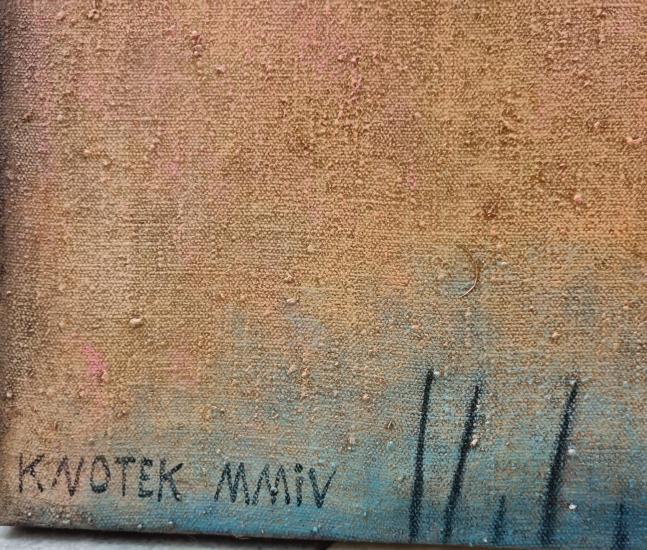 Autor Aleš Knotek, kombinovaná technika na plátně, rozměry 130 x 120 cm, rok 2004.