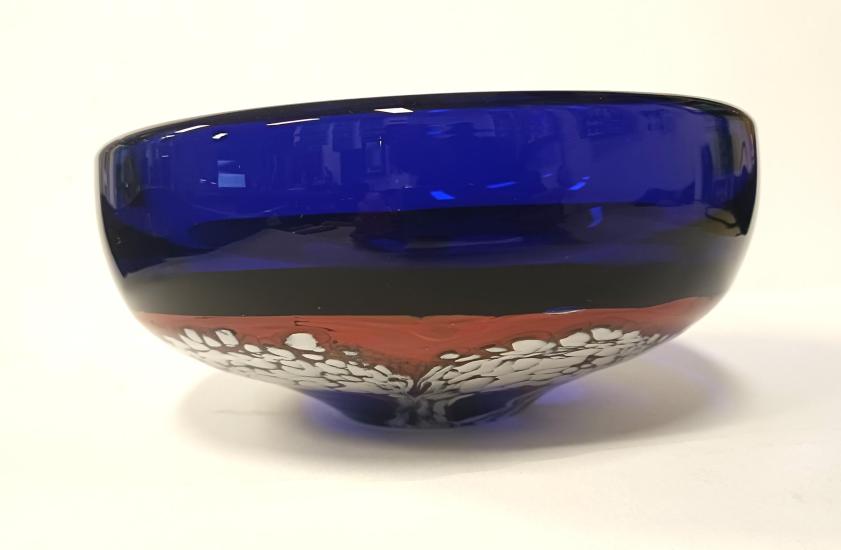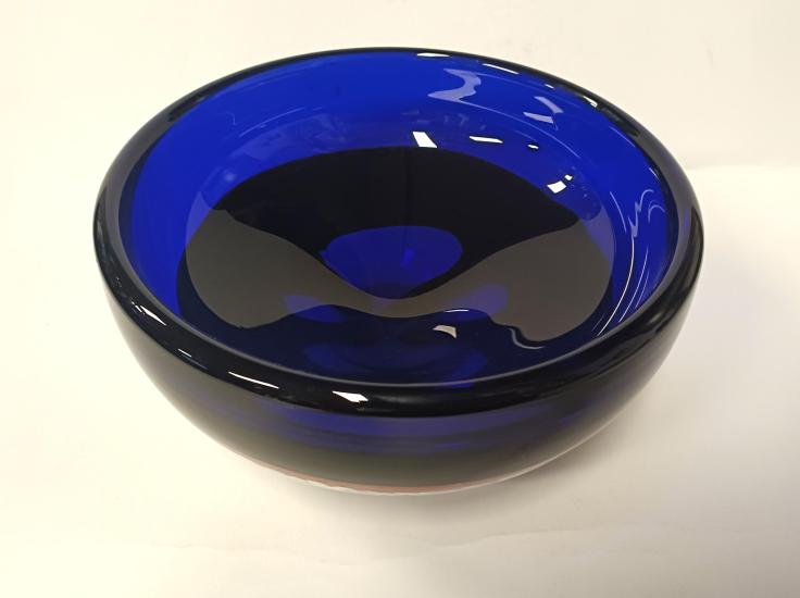 Modrá skleněná designová mísa - Ladislav Oliva - Škrdlovice