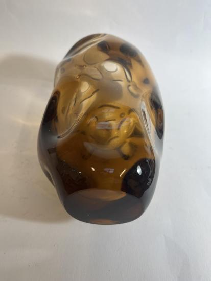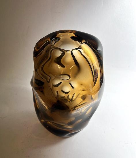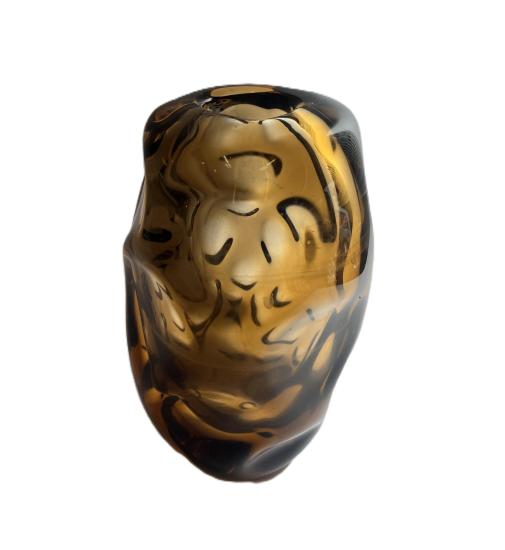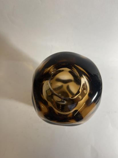 Autorská hutní váza tvarovaná pravidelnými zaoblenými důlky. Autorem je Jaroslav Svoboda. Na výšku měří 18,5 cm, průměr podstavy je 5 cm, průměr hrdla je 4 cm. Značena zlatou nálepkou Škrdlovice. Na podstavě je menší množství lehkých škrábanců, z vnitřní strany vázy pozůstatky vodního kamene.