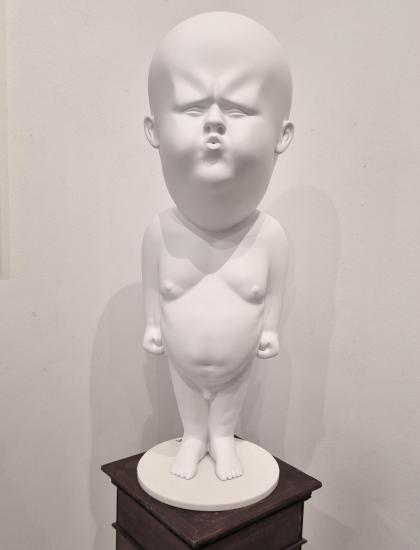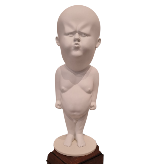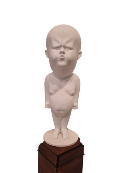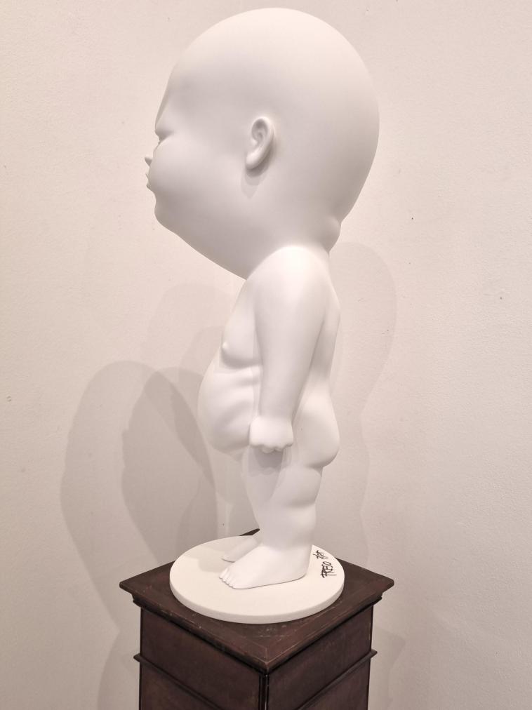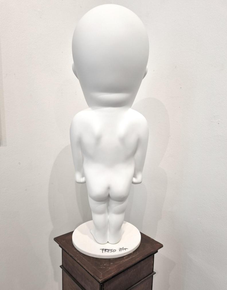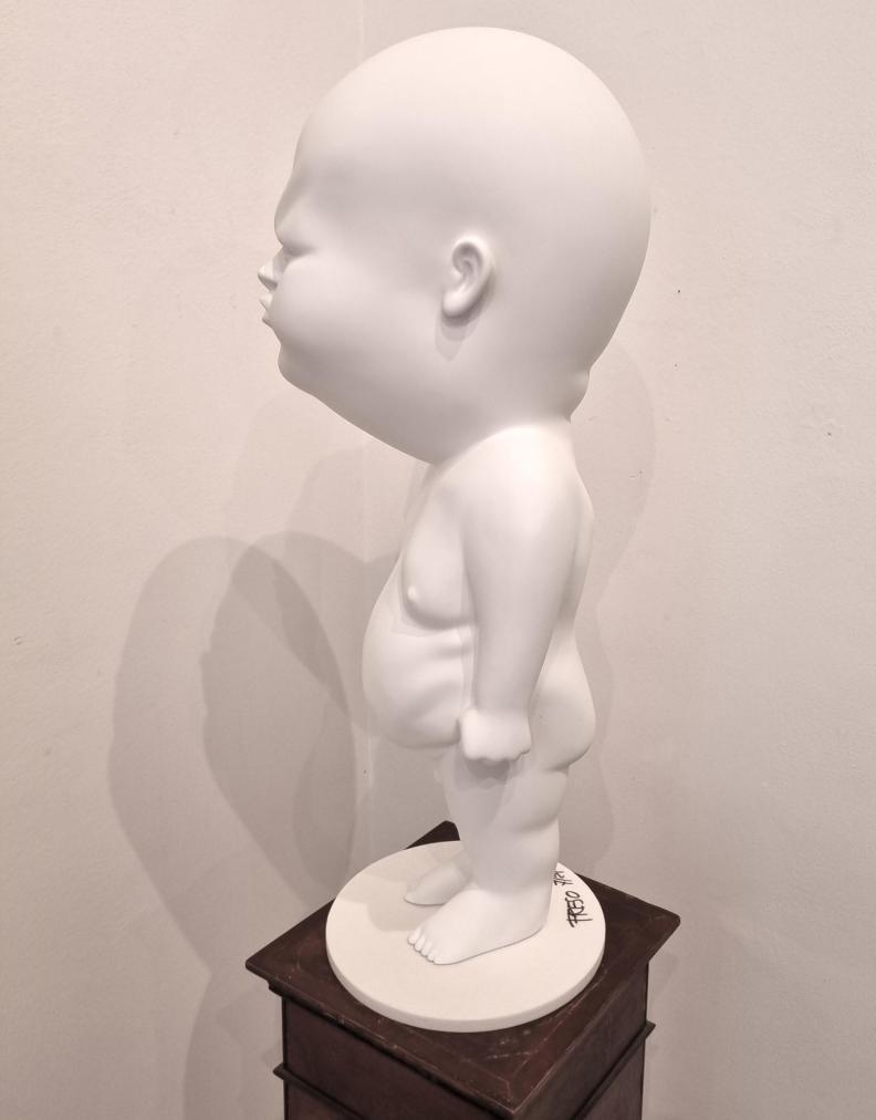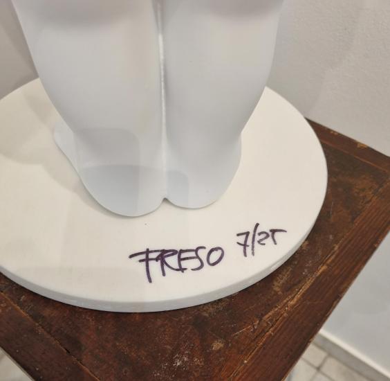 Tento Pičus v matné bílé barvě s našpulenými rtíky, od umělce Viktora Freša, měří na výšku 90 cm. V nejširším bodě( hlava) měří 37 cm. Průměr podstavy je 30 cm. Signatura se nachází na podstavci- Frešo. Materiál plast. Edice 7/25.