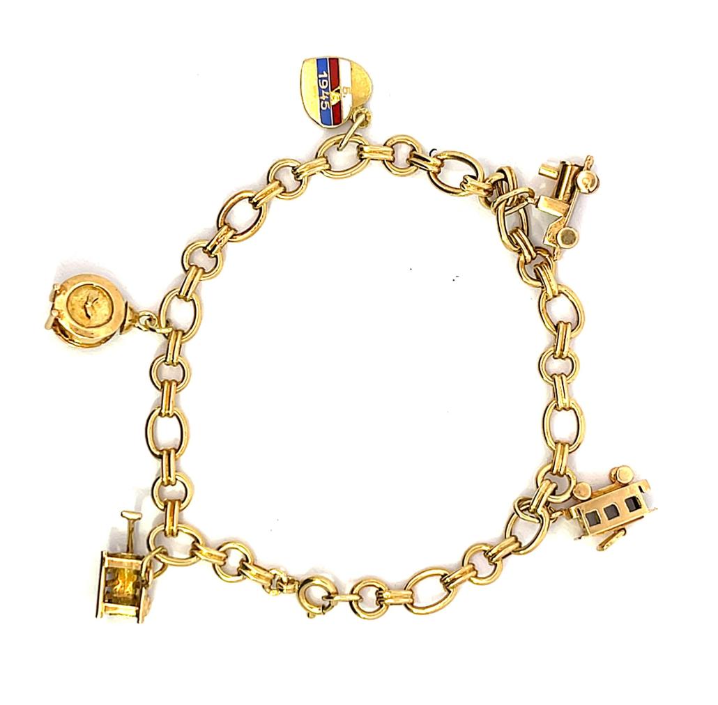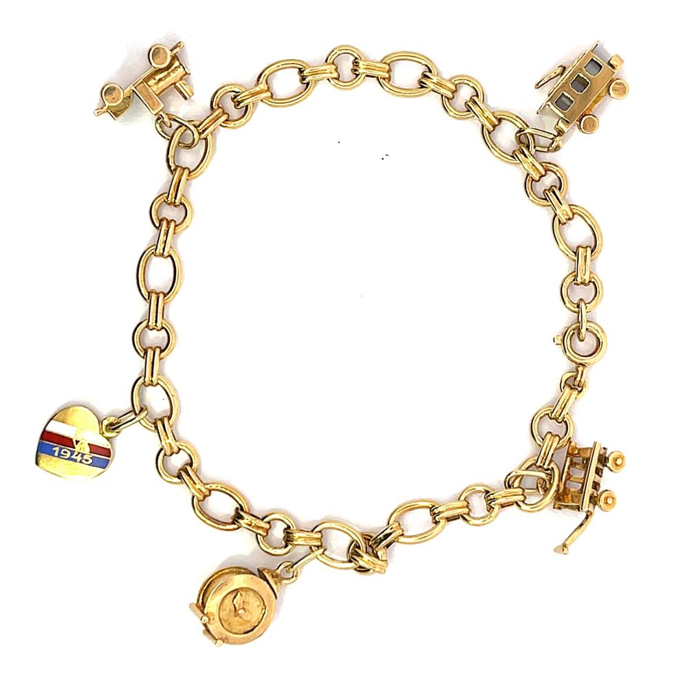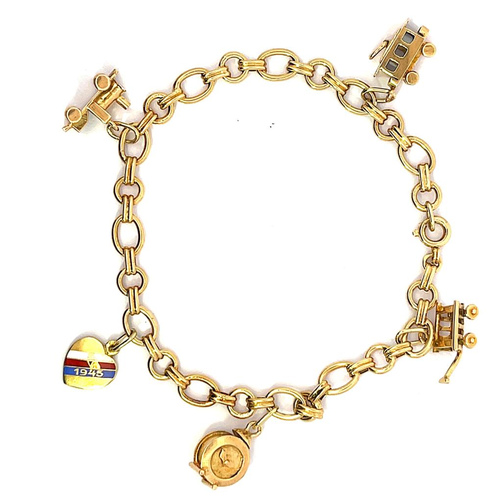 Zlatý náramek o ryzosti 585/1000, punc lvíček. Váha 10,90 g, délka 19 cm, náramek v nejširším bodě 6 mm.