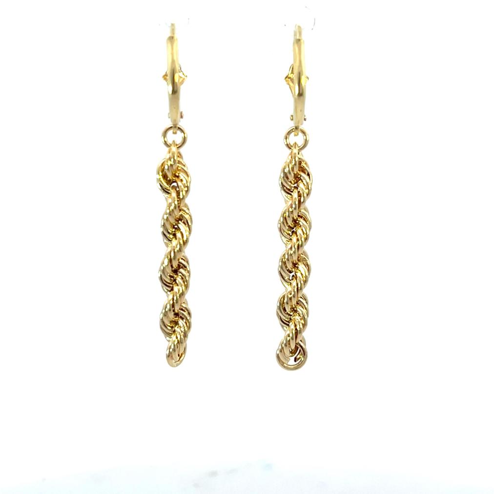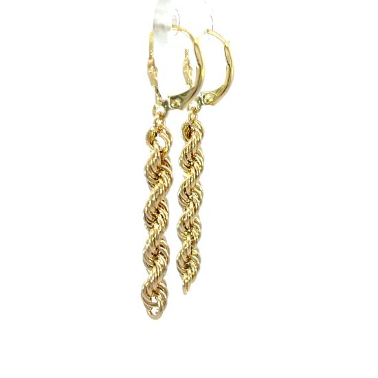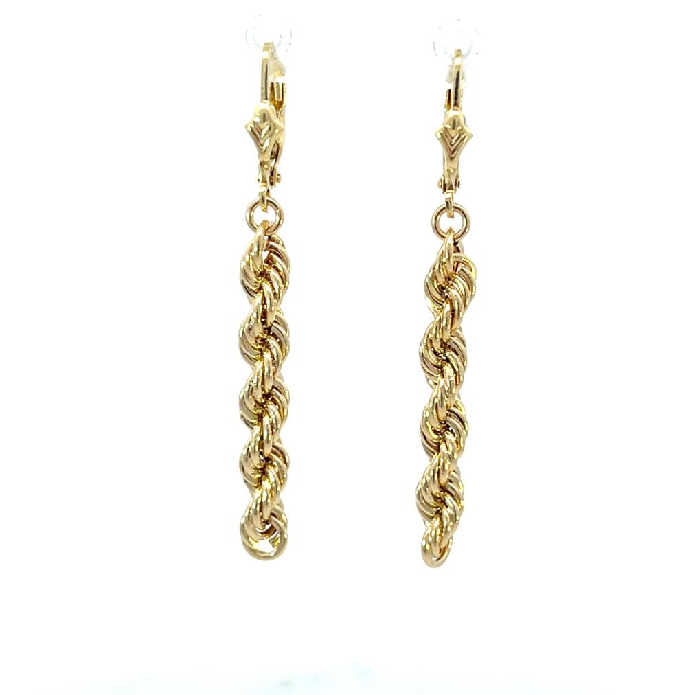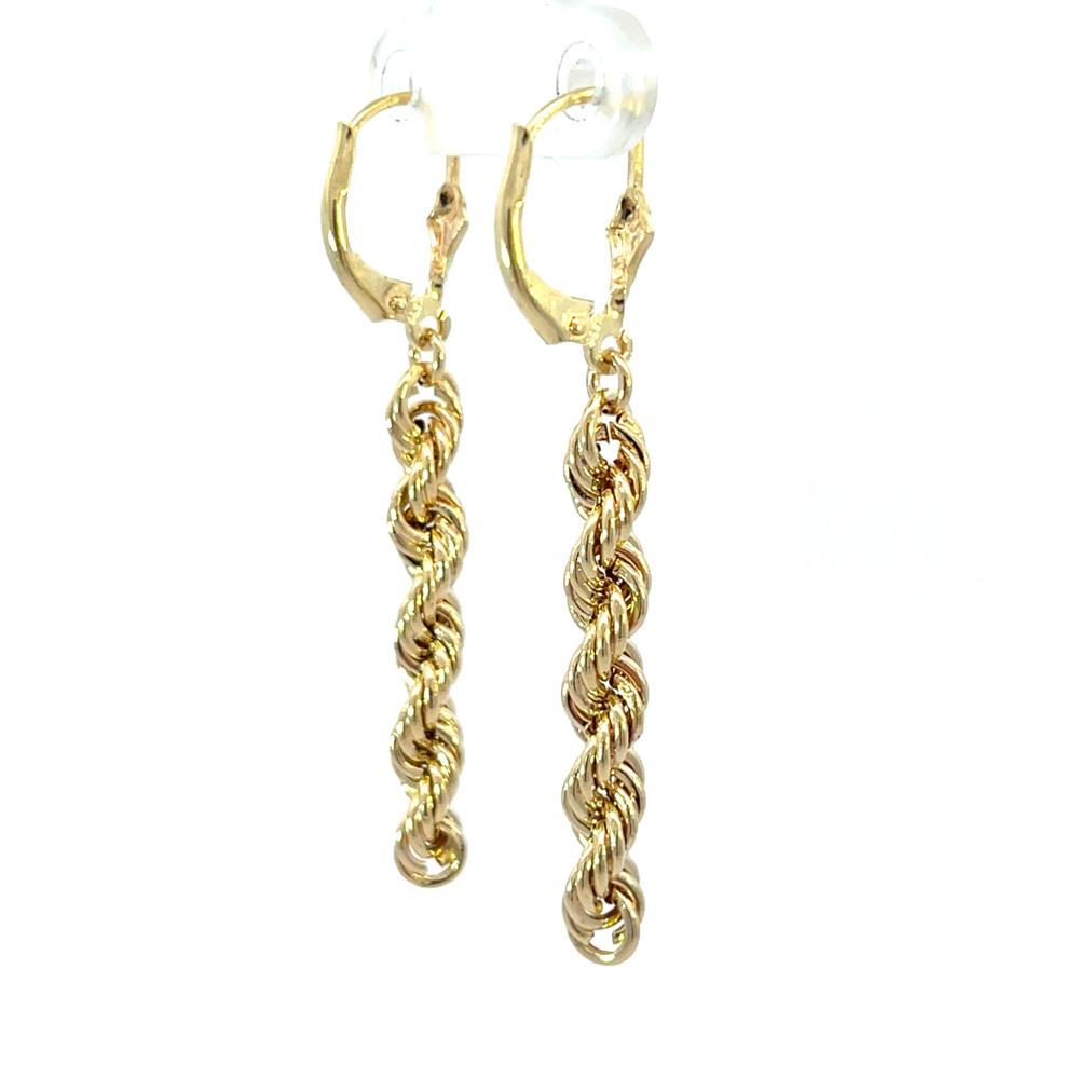 Zlaté náušnice o ryzosti 585/1000, punc labuť. Váha 2,40 g, výška 49 mm, v nejširším bodě 4,5 mm.