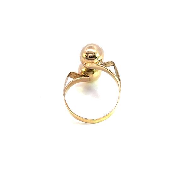 Zlatý prsten o ryzosti 585/1000, punc klas (Z-56 - punc. značka používána od r. 1949). Velikost 52, váha 2,50 g, v nejširším bodě 16 mm. Prsten je lehce deformovaný.