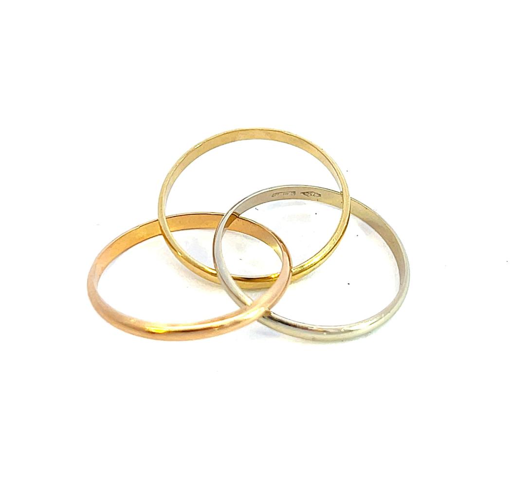 Zlatý prsten složený ze tří kroužků z bílého, žlutého a růžového zlata o ryzosti 750/1000 s puncem kohout. Váha prstenu je 4,52 g, velikost 59. Šířka šíny jednotlivých kroužků je 2 mm.