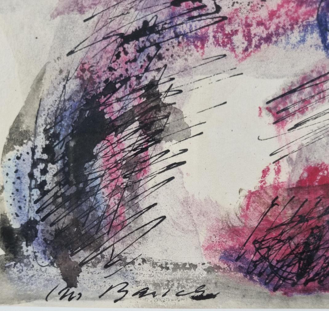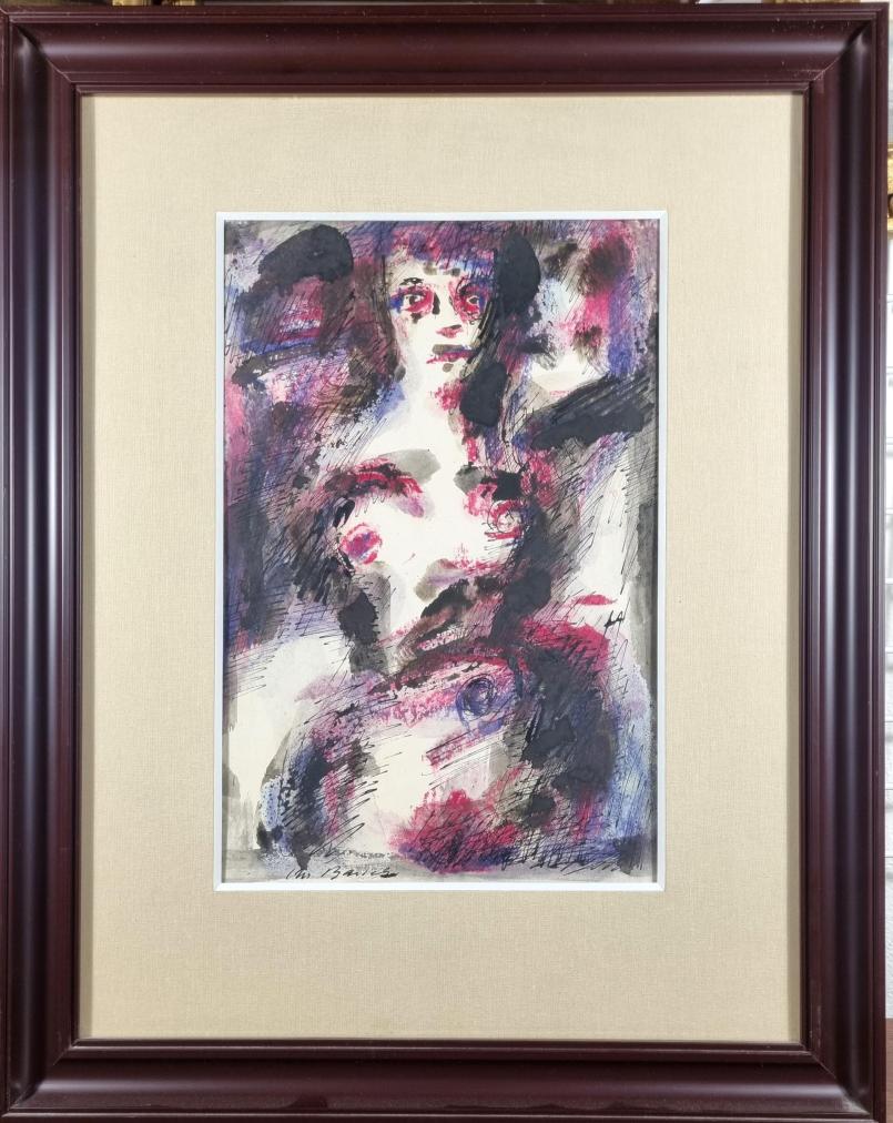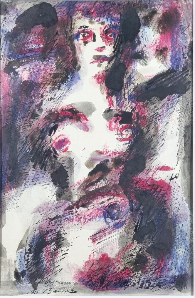 Skvělé dílo od Jana Baucha s motivem aktu ženy. Bauch vytváří intenzivní plochy, které vyplňuje barvou, šrafurami, vytváří několik vrstvev přes sebe. Tím v díle buduje hloubku, která je mu vlastní. Mezi skvrnami a čárami se rýsuje akt ženské postavy, Bauch zachází s učitou dávkou surovosti ve způsobu zpracování, někdy i při výběru motivů. Kombinovaná technika na papíře, rámováno pod sklem, rozměry s rámem 54,5 x 43,5 cm, rozměry díla 34 x 22 cm. Signováno vlevo dole "Jan Bauch".