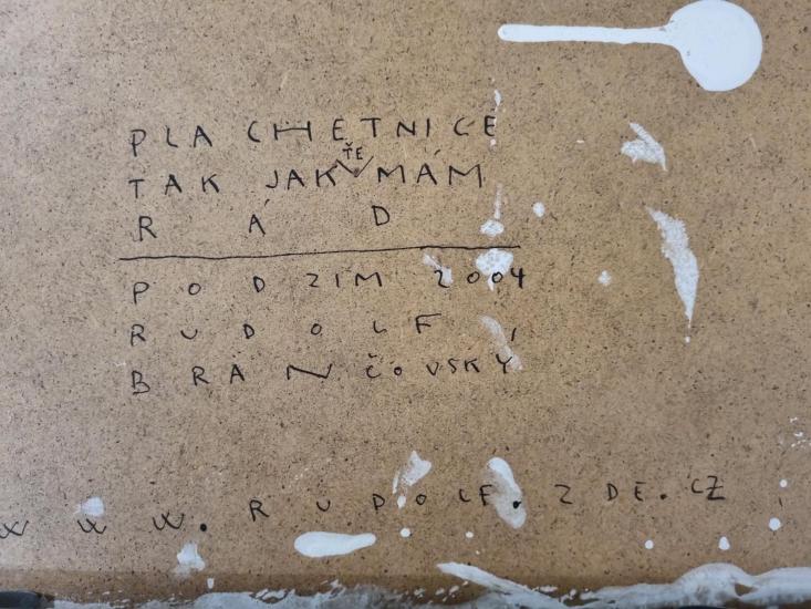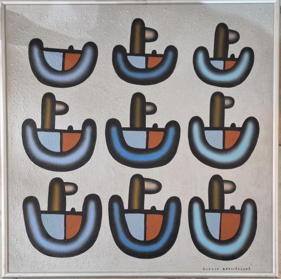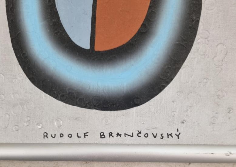 Rudolf Brančovský je autorem, pro kterého je charakteristické repetitivní používání stejného motivu v rámci jednoho díla. Jednotlivé motivy se od sebe liší velikostí teček, linek či intenzitou barvy, zde si autor hraje i s měřítkem motivů a odlišuje je od sebe i tónováním ploch. Autor vytváří zajímavou strukturu pod malbou, která dílo ozvláštňuje. Akryl na sololitu, rozměry s rámem 40,5 x 40,5 cm, rozměry malby 38,5 x 38,5 cm. Signováno vpravo dole viz foto "Rudolf Brančovský".