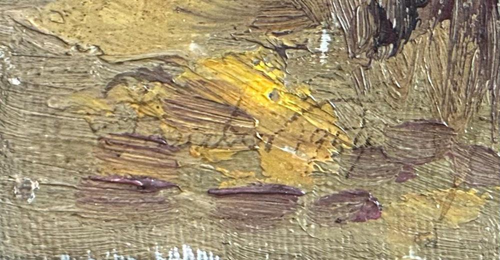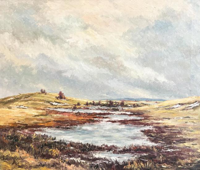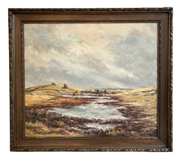 Obraz zachycuje krajinu, která je po vydatných podzimních deštích a dýchá z něj chladná atmosféra přicházející zimy. Olej na plátně. Signováno v levém dolním rohu Jambor 1954. Rozměry s rámem jsou 104 x 92 cm a bez 87 x 74. Rám je neodborně natřen hnědou barvou.