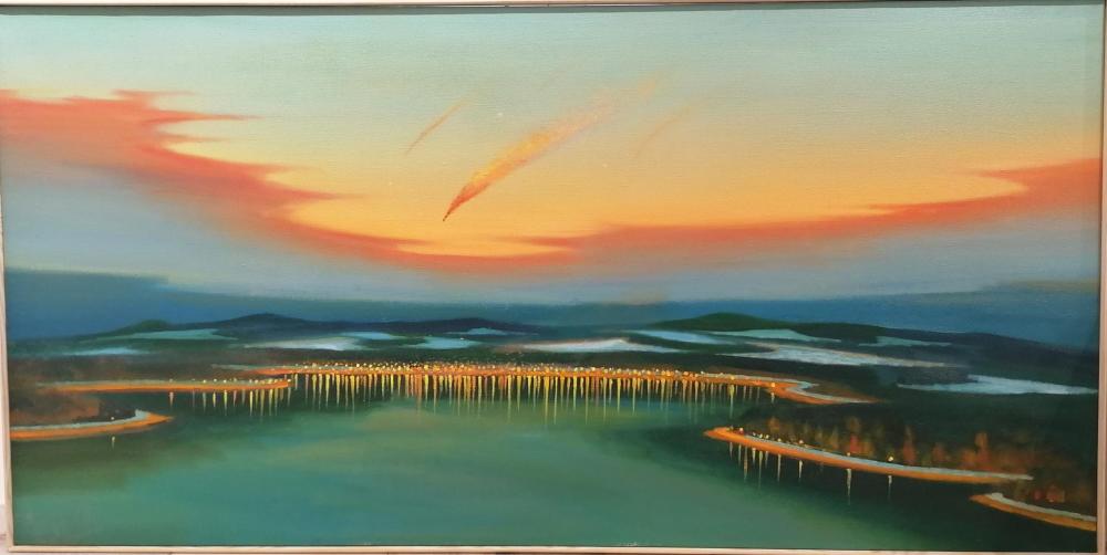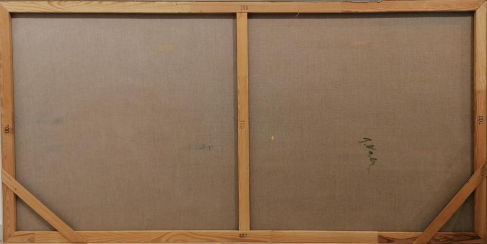 Obraz od Jaroslava Valečky, olej na plátně, rámováno, rozměry 200 x 100 cm. Signováno ze zadní strany.