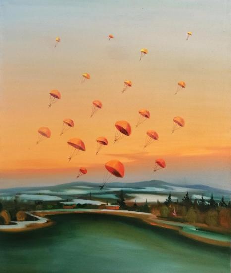 Obraz od Jaroslava Valečky, olej na plátně, nerámováno, rozměry 120 x 100 cm. Signováno ze zadní strany.