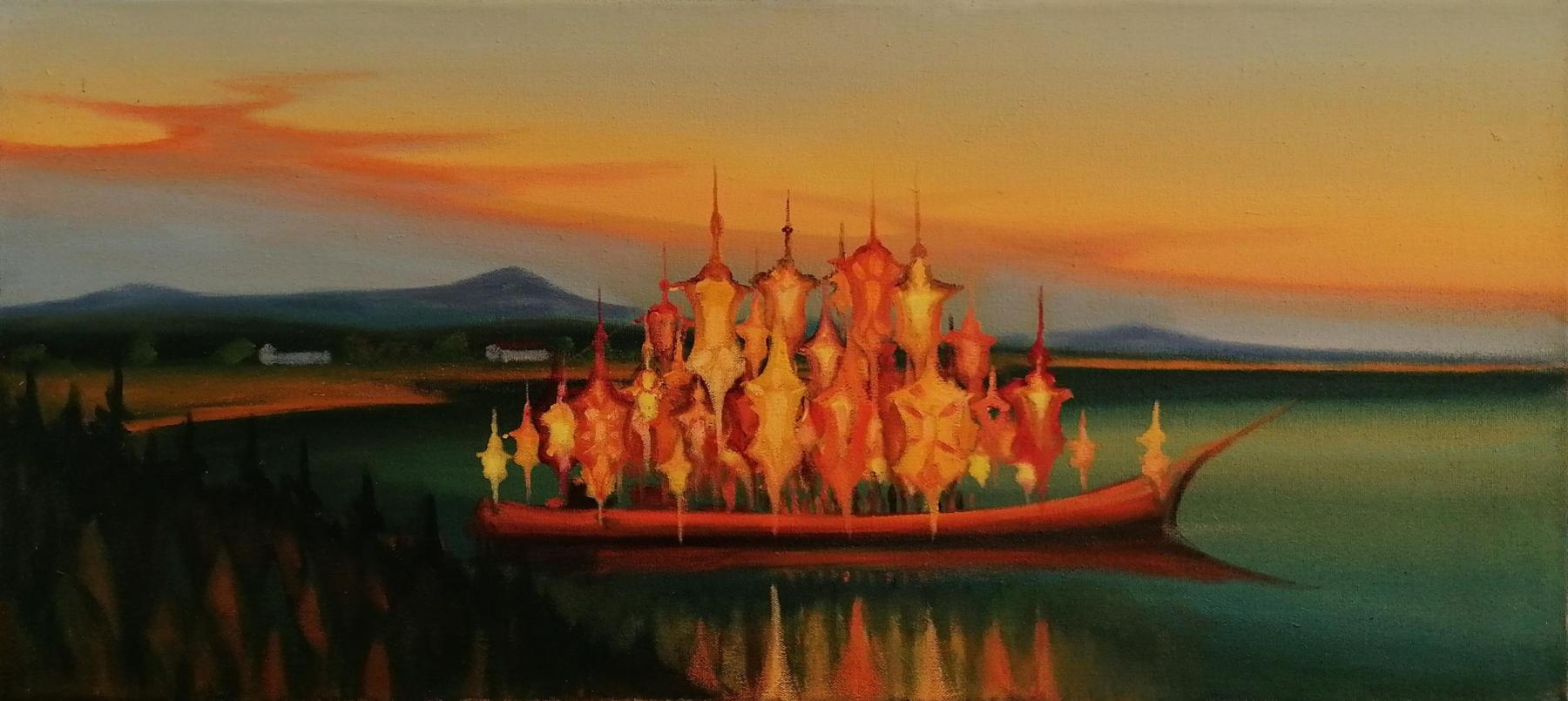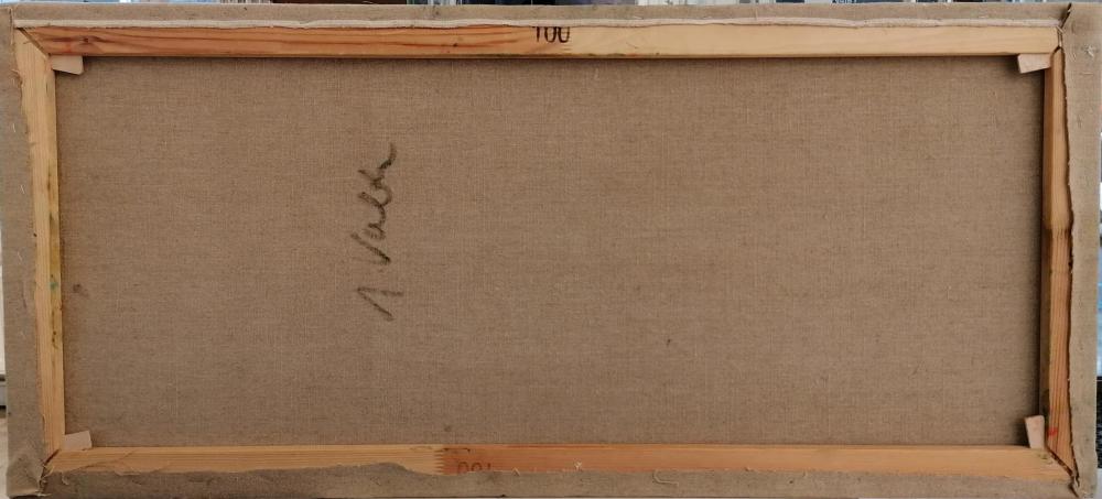 Obraz od Jaroslava Valečky. Olej na plátně, nerámováno, rozměry 100 x 45 cm. Signováno zezadu.