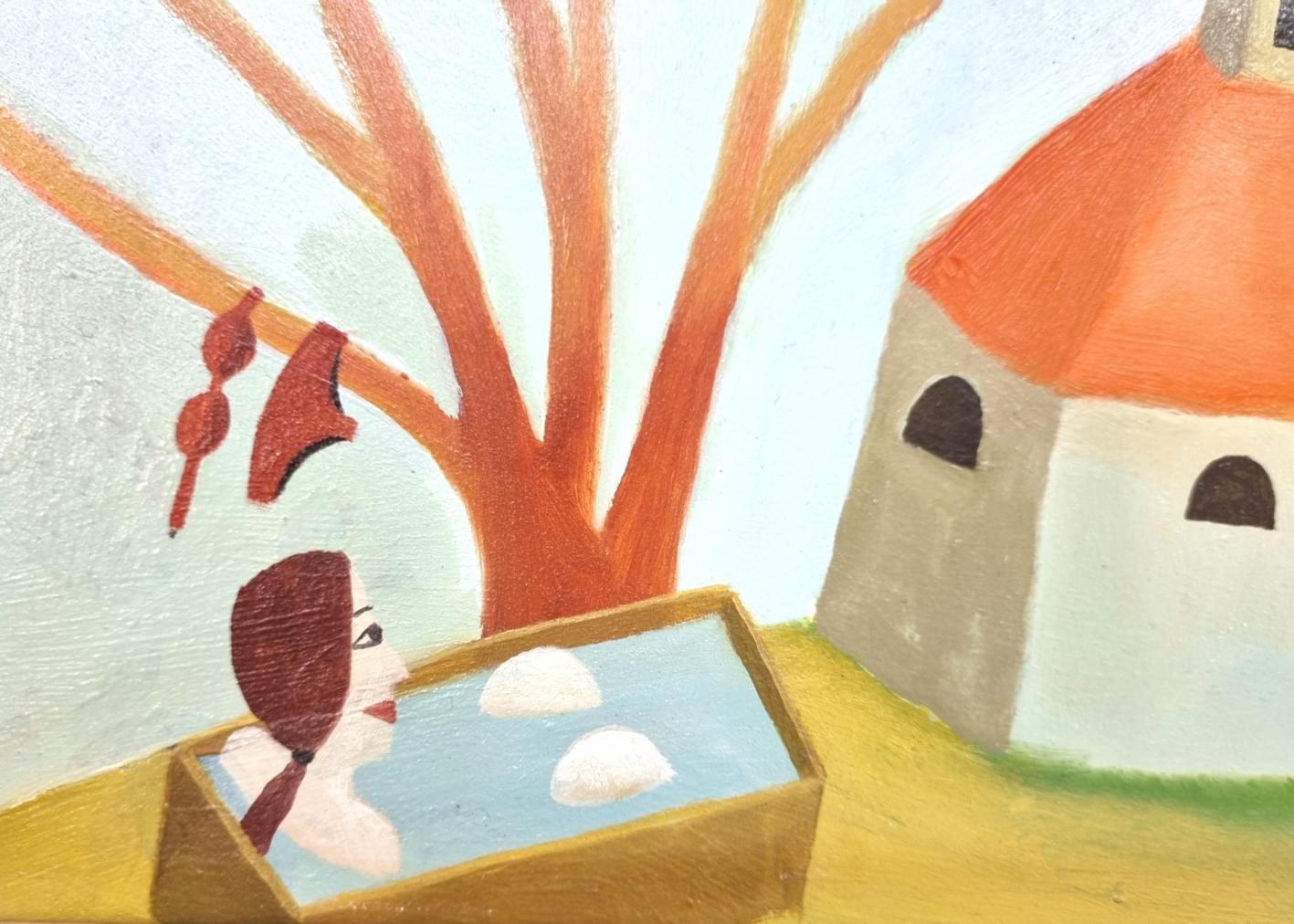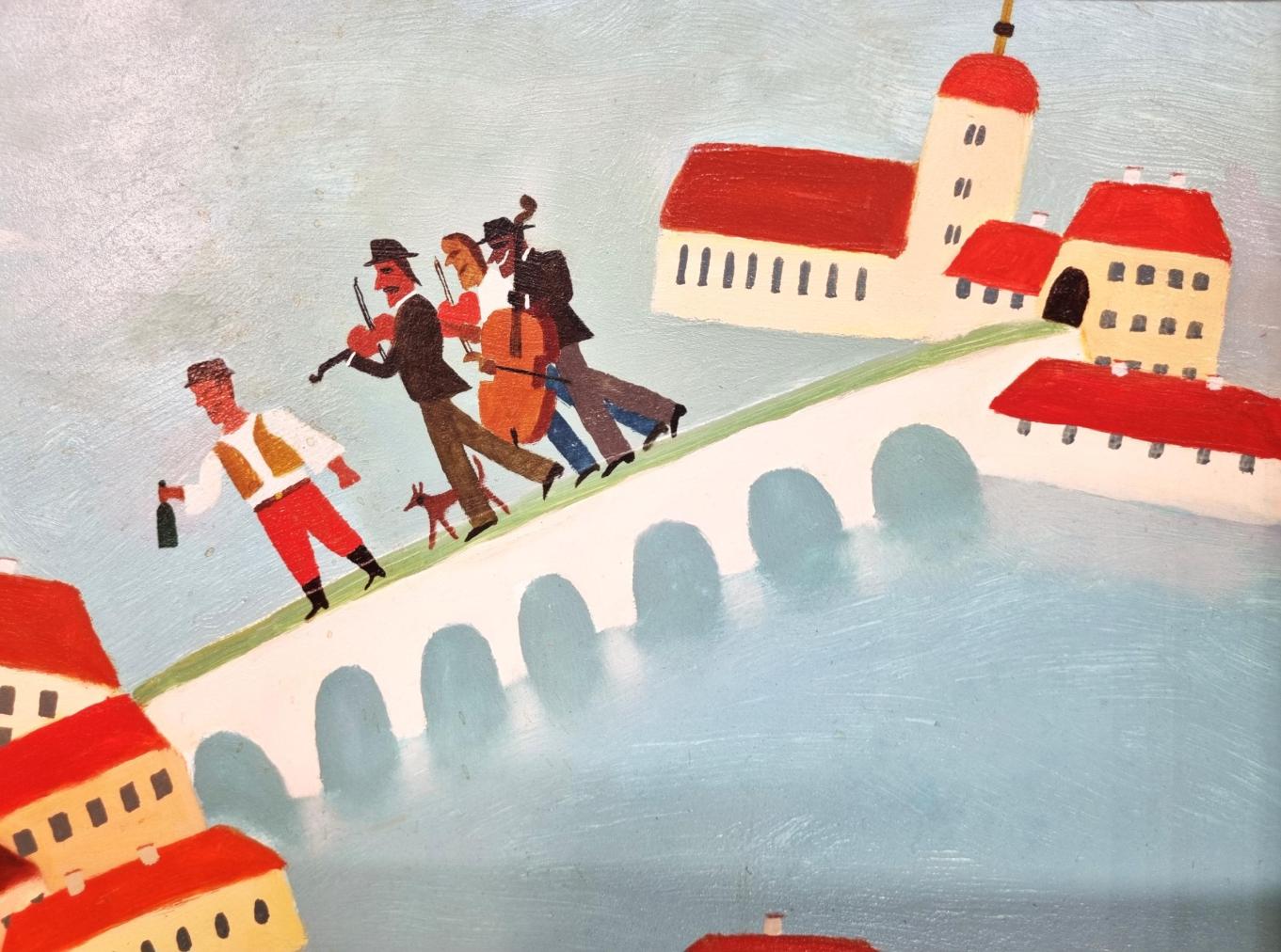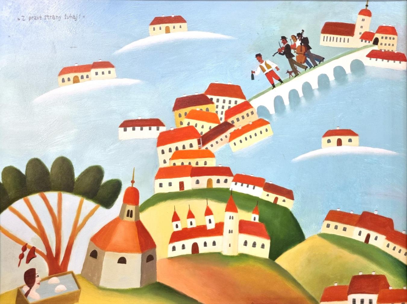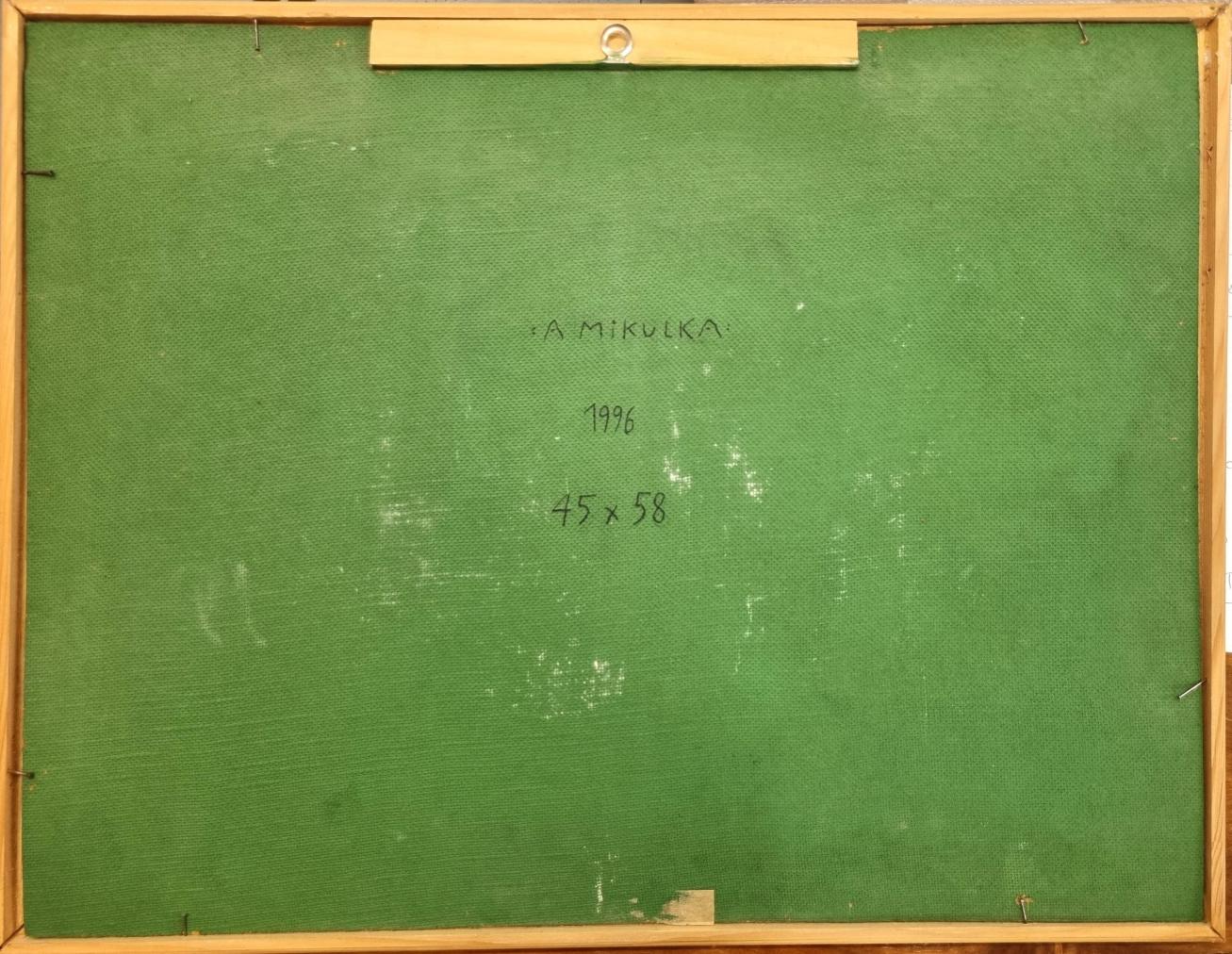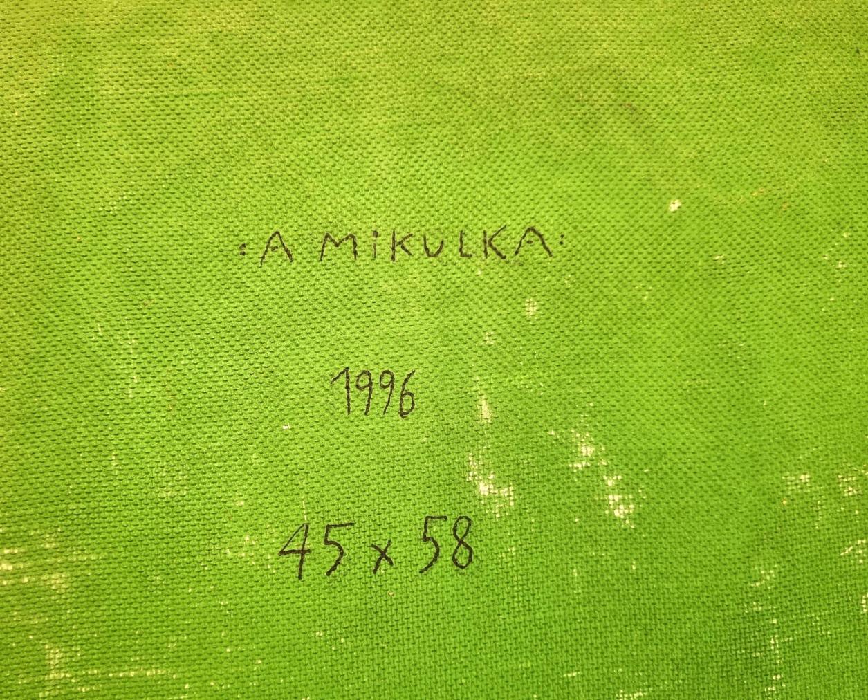 ,,Z pravé strany šuhaj,, A. Mikulka, olej na překližce, datace 1996.