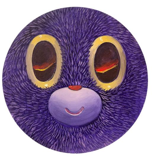 Malba portrétu chlupatého tvora s velkýma očima od autorky Kláry Sedlo. Průměr díla je 30 cm. Olej na kartonu. Nerámováno. PODEPSAT