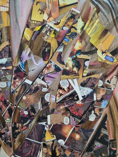 Olej a koláž na plátně, 180x100 cm, 2022