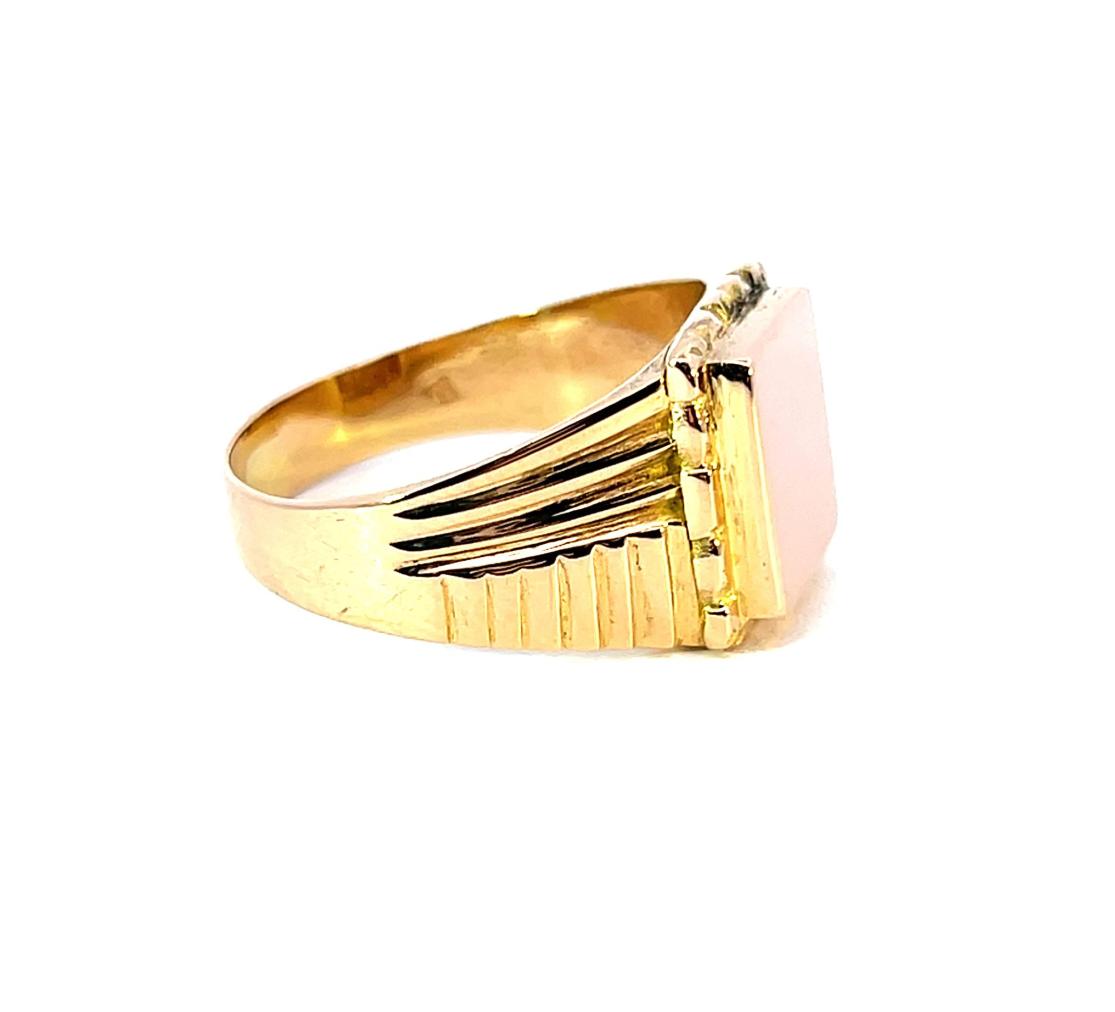 Zlatý prsten o ryzosti 750/1000, punc kohout. Velikost 62, váha 7,22 g, rozměr hlavy prstenu 10 x 11 mm.