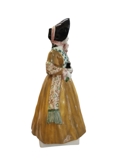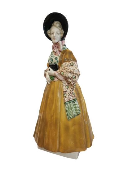 Krásná porcelánová soška ženy ve žlutých šatech. Na sošce je několik krásných detailů, florální motivy na šatech, či jemně vymalovaná tvář ženy, která poklidně hledí před sebe. Výška 43 cm, v nejširším bodě 26 cm. Značeno vespod, BB - Bernard Bloch. Skvělý stav. Autor Carl Klimt.