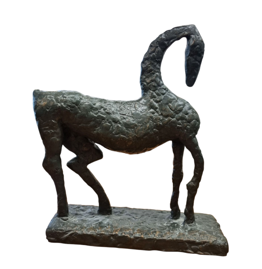 Bronzová soška koně od českého akademického malíře a sochaře Vladimíra Drápala. Koník je proveden v surovém stylu, kdy je vidět jak byl materiál postupně přidáván. Jednoduchý, ale zároveň velmi zajímavý design vynikne jako nádherný doplněk a zároveň poslouží i jako sběratelský kus. Soška je signovaná na soklu Drápal. Na výšku má 26 cm a sokl má na šířku 22 cm.