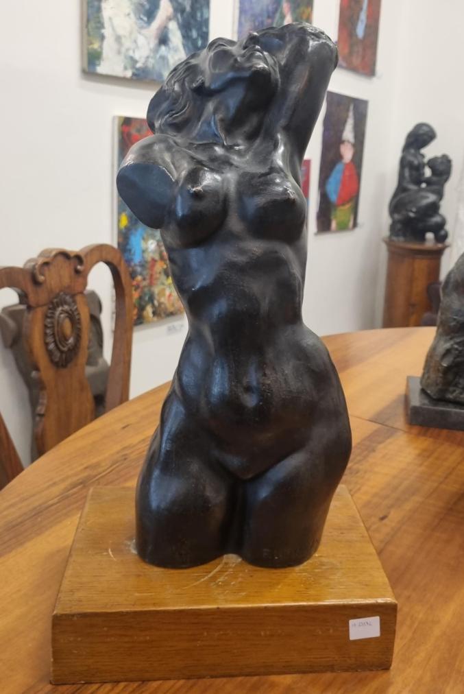 Socha na dřevěném podstavci z litiny od akademického sochaře Františka Hořavy. Socha má typický Hořavův rukopis, tělo je krásně hladké, téměř dokonalé v protažené pozici, kdy si žena sahá do vlasů a v nich se ztrácí její ruka. Socha je signovaná na levé noze F. Hořava. Socha bez podstavce má 42 cm na výšku a s podstavcem má 48 cm. Podtavec je široký 24 cm a do hloubky má 17,5 cm.