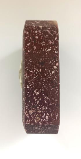 Krásné mramorové těžítko s kamejí. Rozměry: 7,5 x 6,5 x 2,5cm. Kamej je z kamene a je zasazená do kovové obruby. velice jemná sochařská práce.