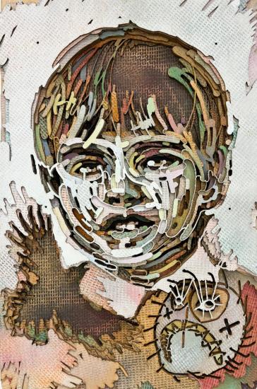 Laser cut od Ivany Štenclové o rozměrech 60 x 40 cm. Rok vzniku 2016. Signováno z druhé strany díla. Akryl, překližka.