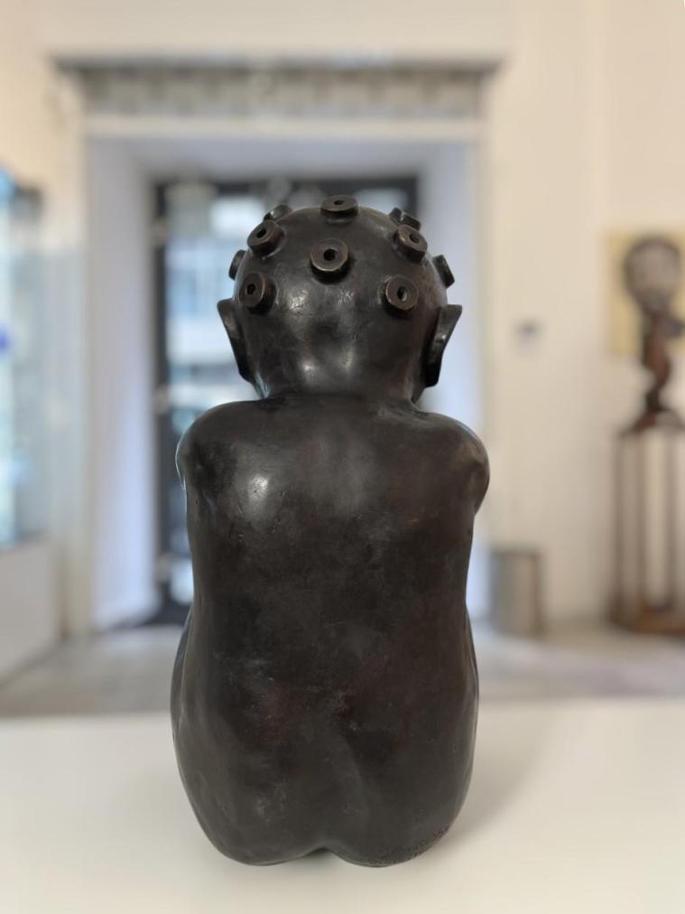 Tu velkou sochu jsem poprvé viděl minulý rok v květnu a tu malou v lednu 2026 v ateliéru pana Jaroslava Róny. Sochu ,,Dítě z Marsu,, v malém provedení si můžete prohlédnout u nás v galerii Graciano, Veselá 39, Brno. Rozměry sochy v malém provedení: výška 54 cm, v nejširším bodě 27 cm, hloubka 30 cm, materál: bronz. K dílu je originální certifikát od autora.