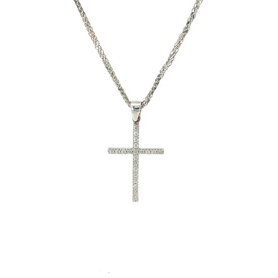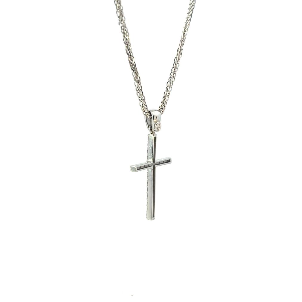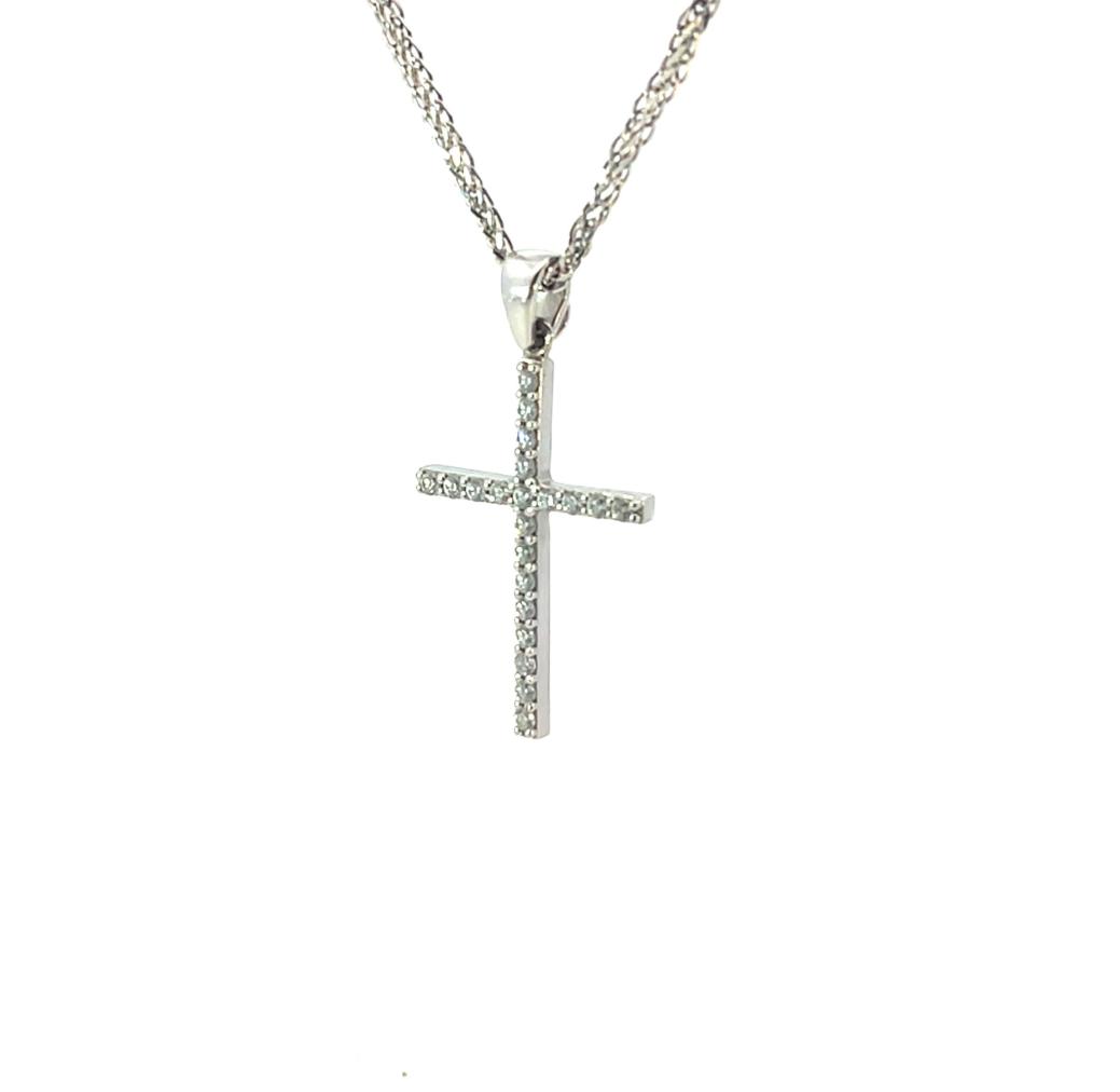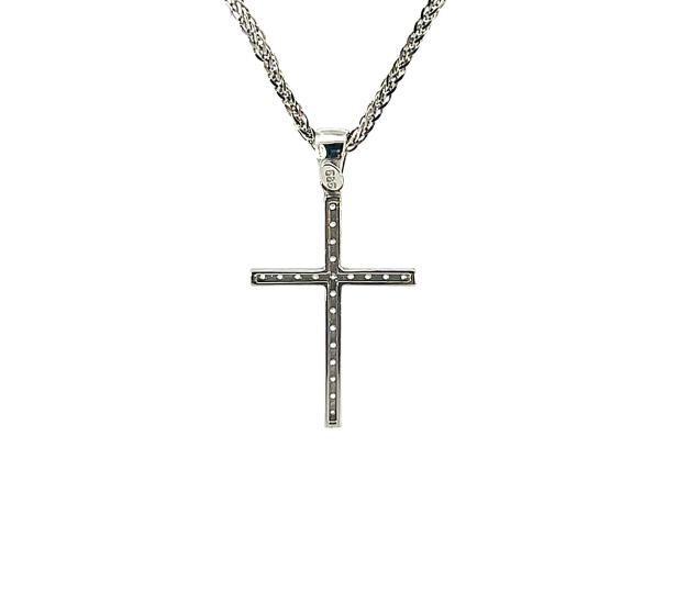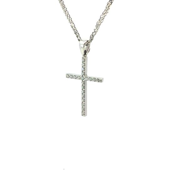 Přívěs z bílého zlata o ryzosti 585/1000, punc labuť. Váha 1,20 g, výška včetně očka 27 mm, v nejširším bodě 16 mm.