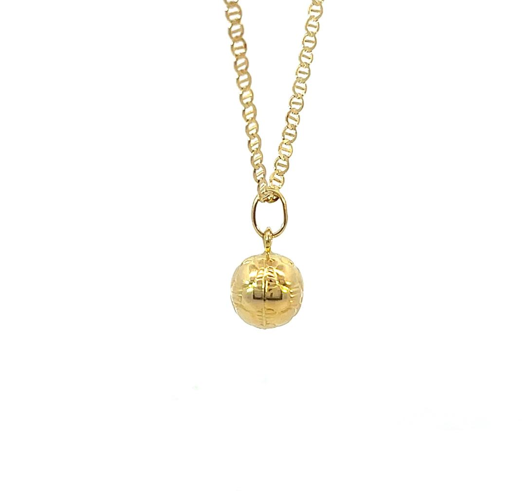 Zlatý přívěs o ryzosti 585/1000, punc labuť. Váha 1,0 g, výška včetně očka 16,5 mm, průměr ozdoby 9 mm.