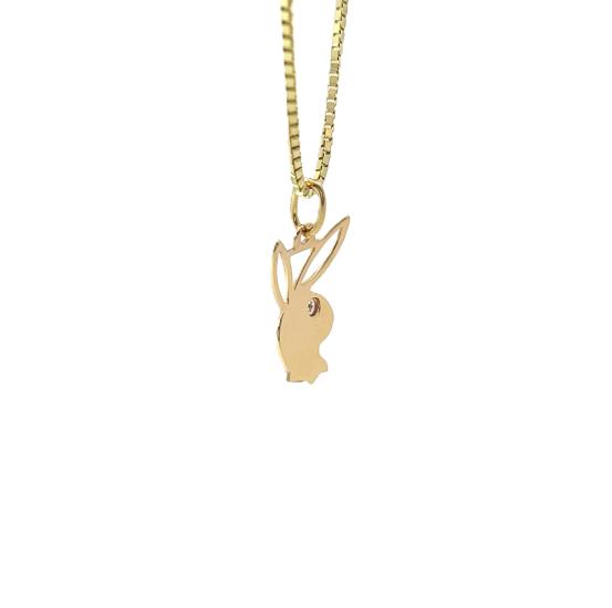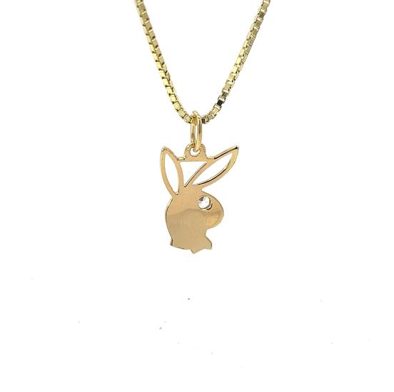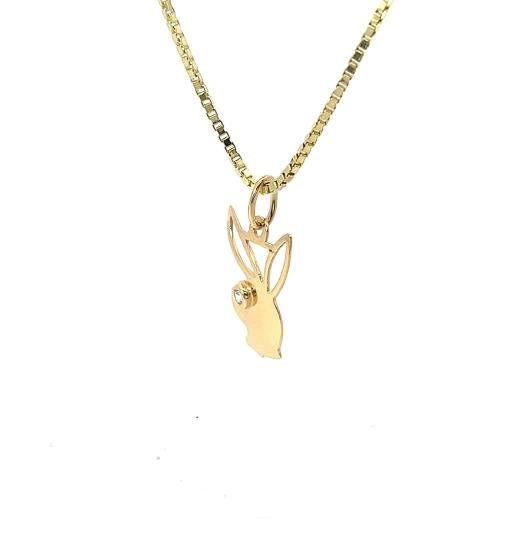 Zlatý přívěs o ryzosti 585/1000, punc labuť. Váha 0,74 g, výška včetně očka 21,5 mm, v nejširším bodě 12 mm.