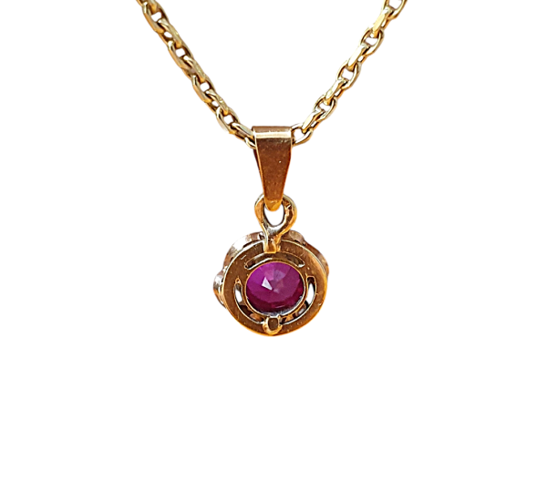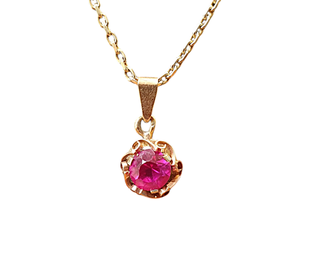 Zlatý přívěšek o ryzosti 585/1000, punc labuť, váha 0,95 g, na výšku s očkem 19 mm. Kámen je syntetický. Řetízek není součástí šperku.