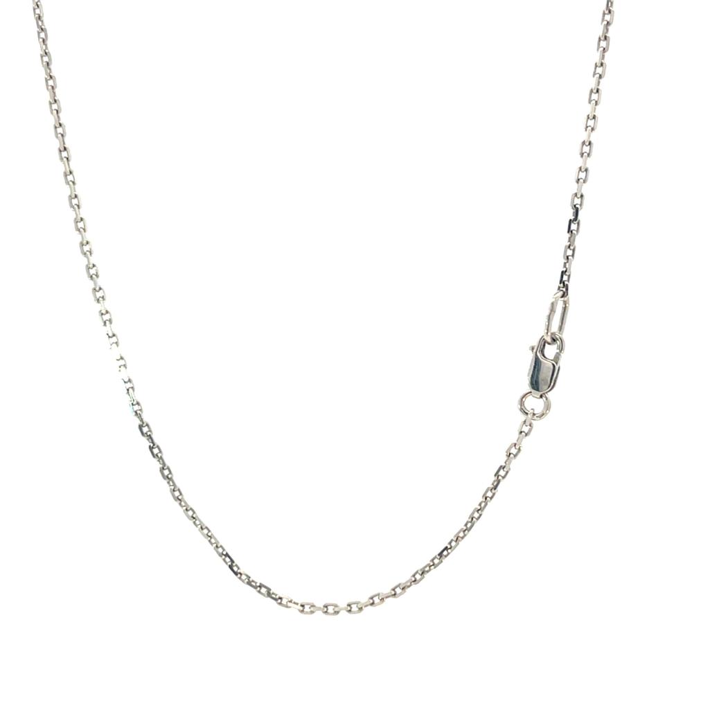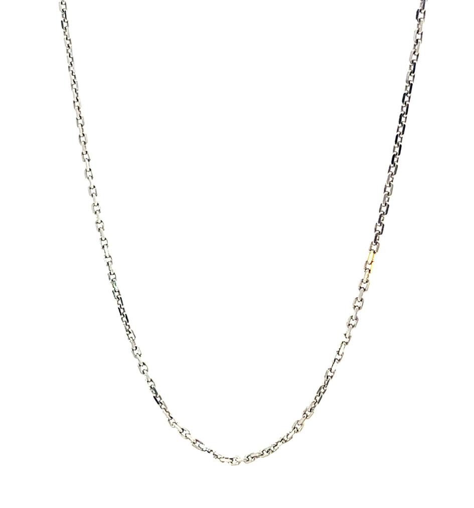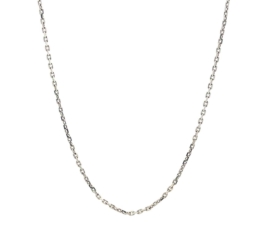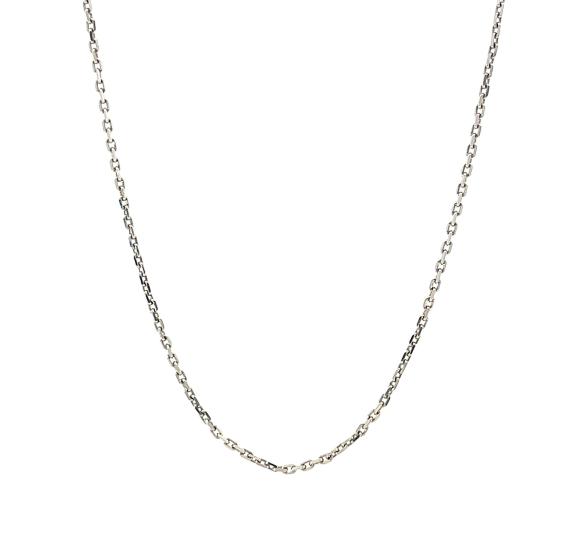 Řetízek z bílého zlata o ryzosti 585/1000, punc labuť. Váha 4,15 g, délka 50,5 cm, v nejširším bodě 1,5 mm.
