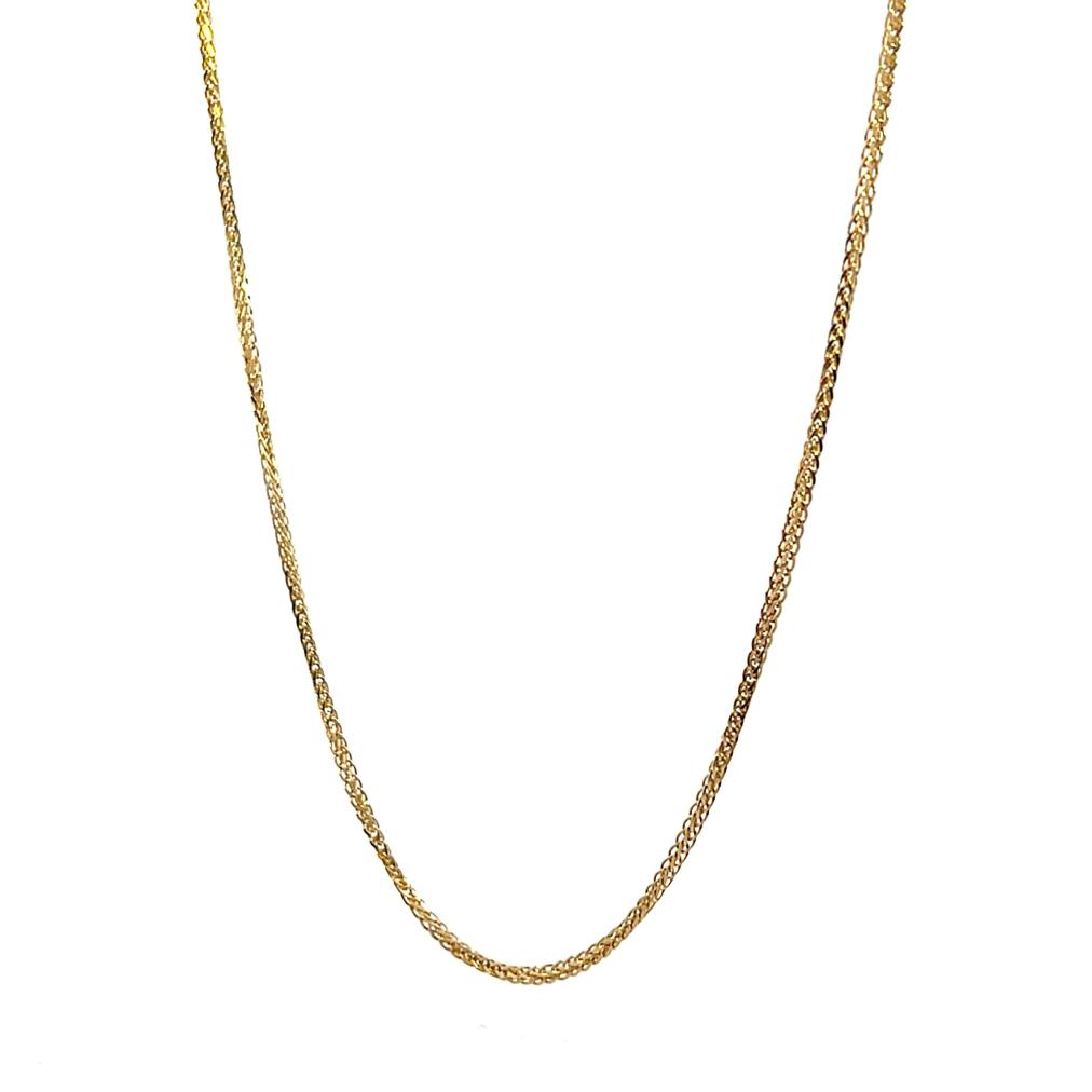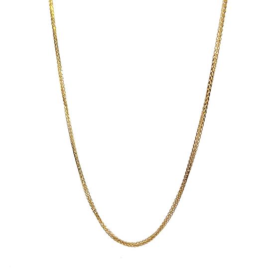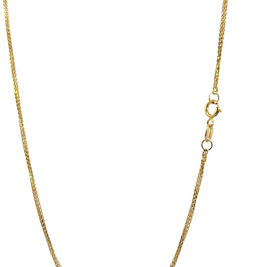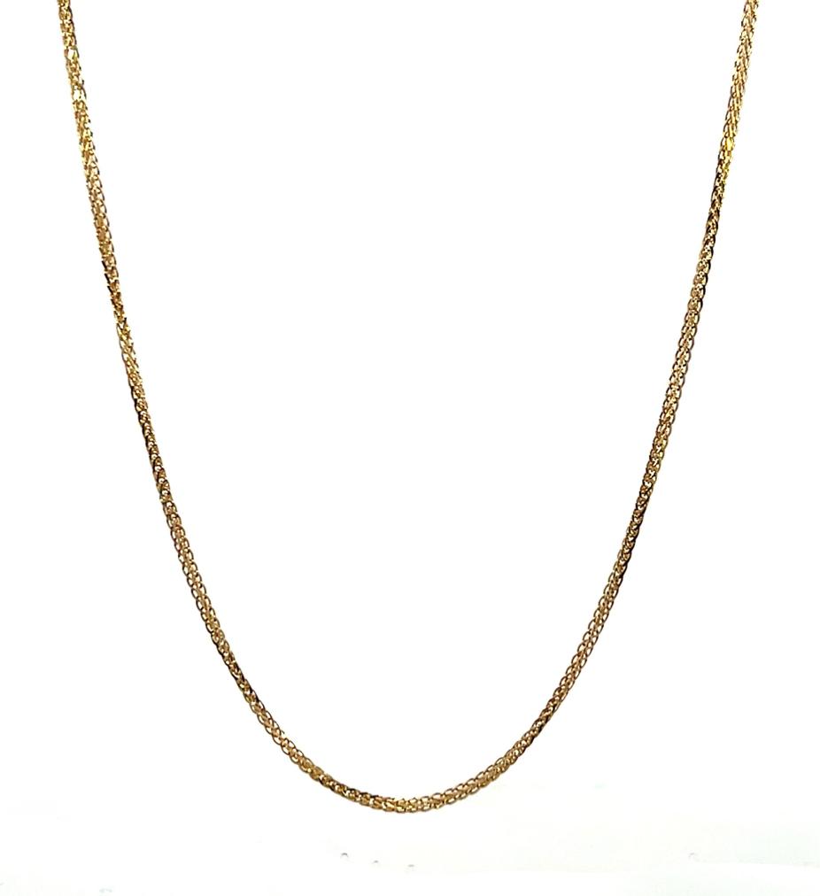 Zlatý řetízek o ryzosti 585/1000, punc labuť. Váha 2,57 g, délka 51,3 cm, v nejširším bodě 1 mm.