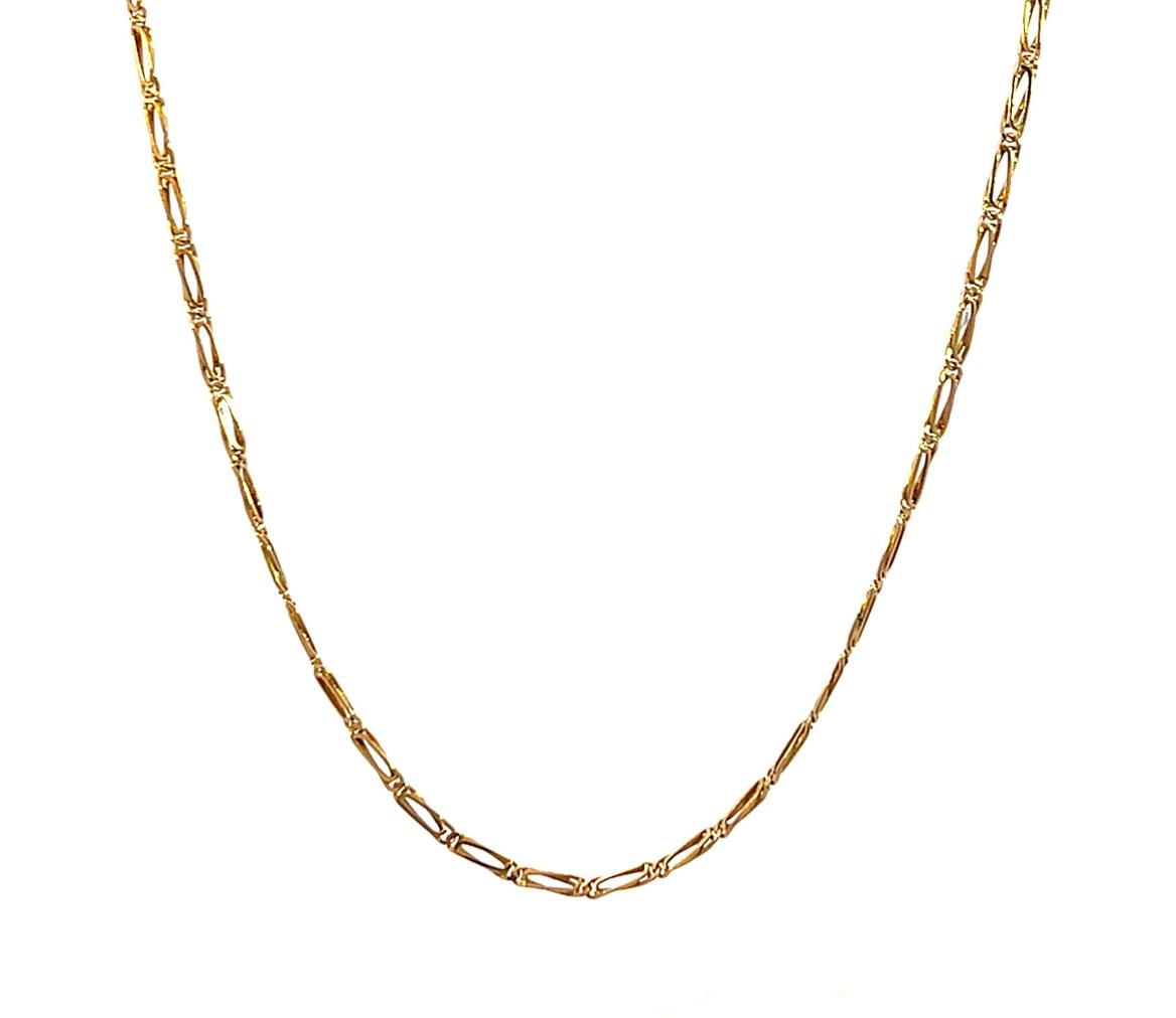 Řetízek z růžového zlata o ryzosti 585/1000, punc čejka. Váha 2,88 g, délka 45 cm, v nejširším bodě 1,5 mm.