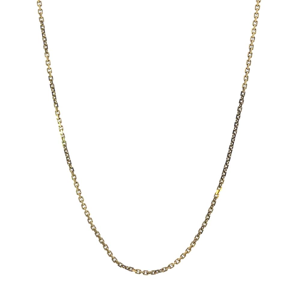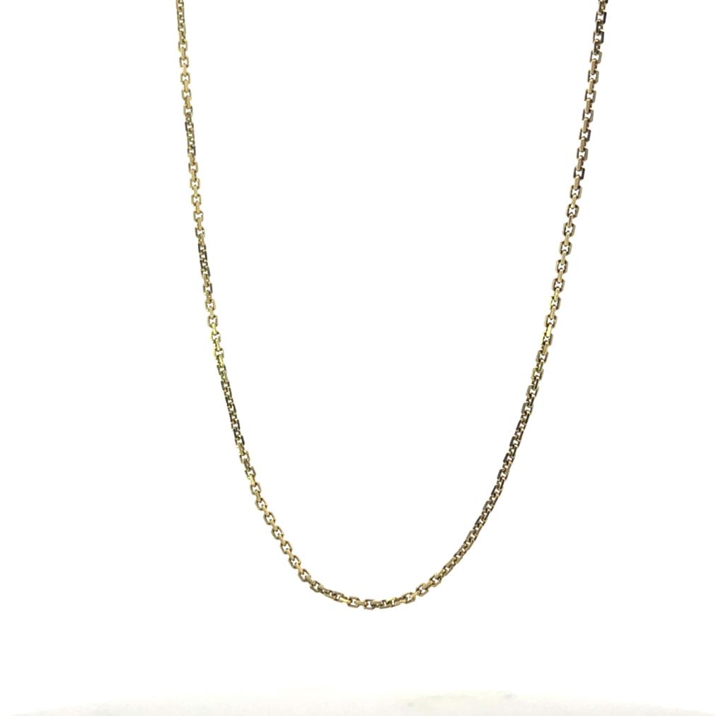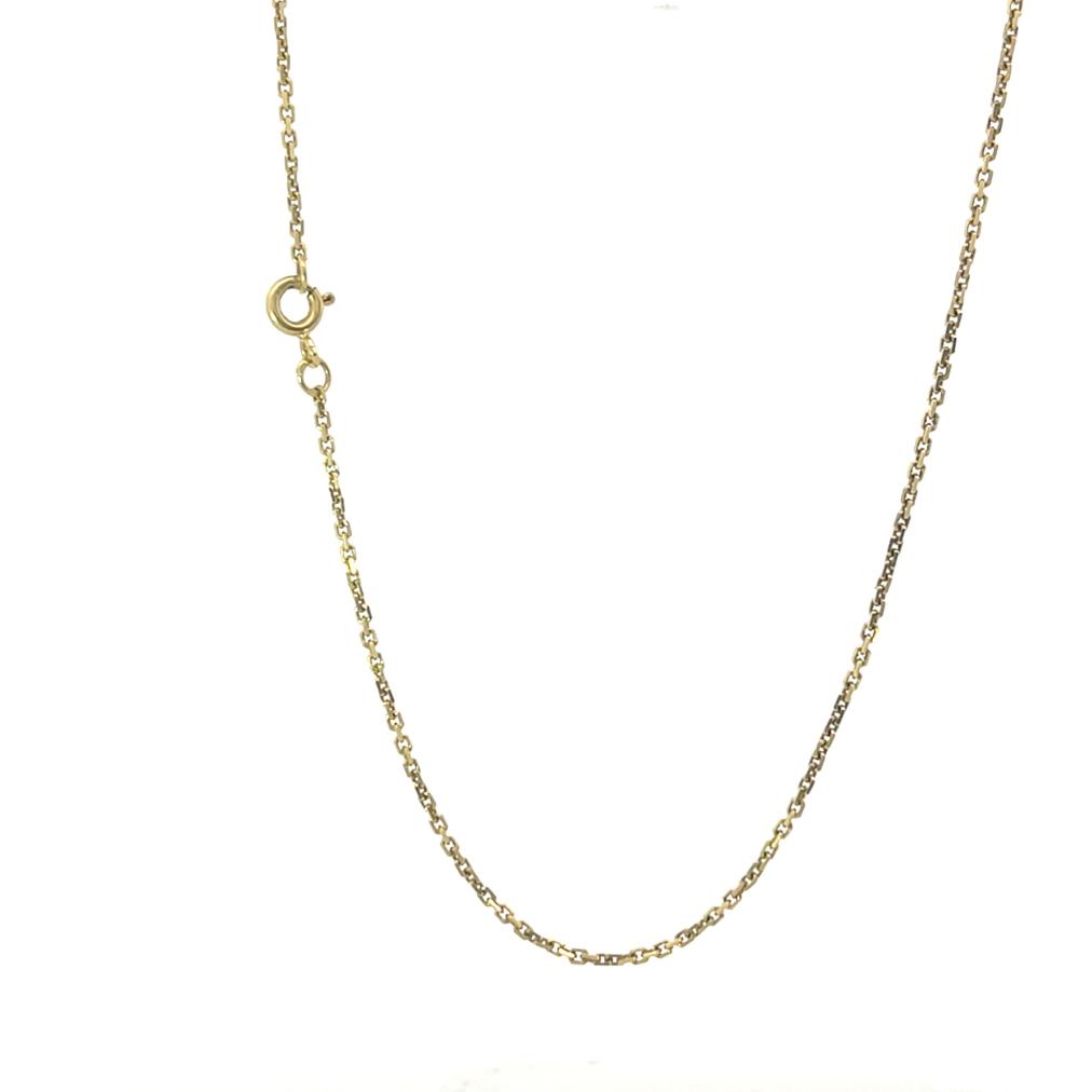 Zlatý řetízek o ryzosti 585/1000, punc labuť. Váha 3,60 g, délka 43,8 cm, v nejširším bodě 1,5 mm.